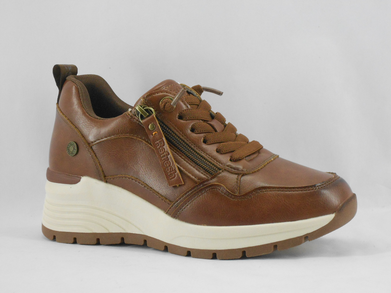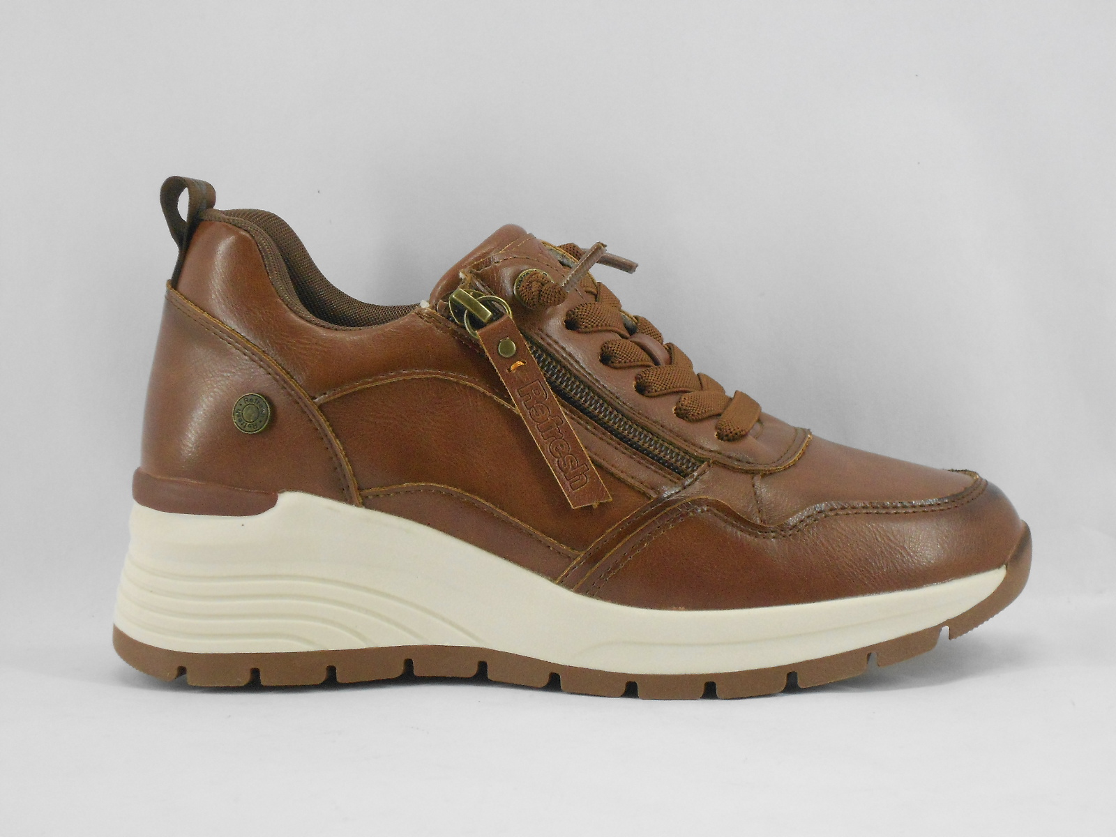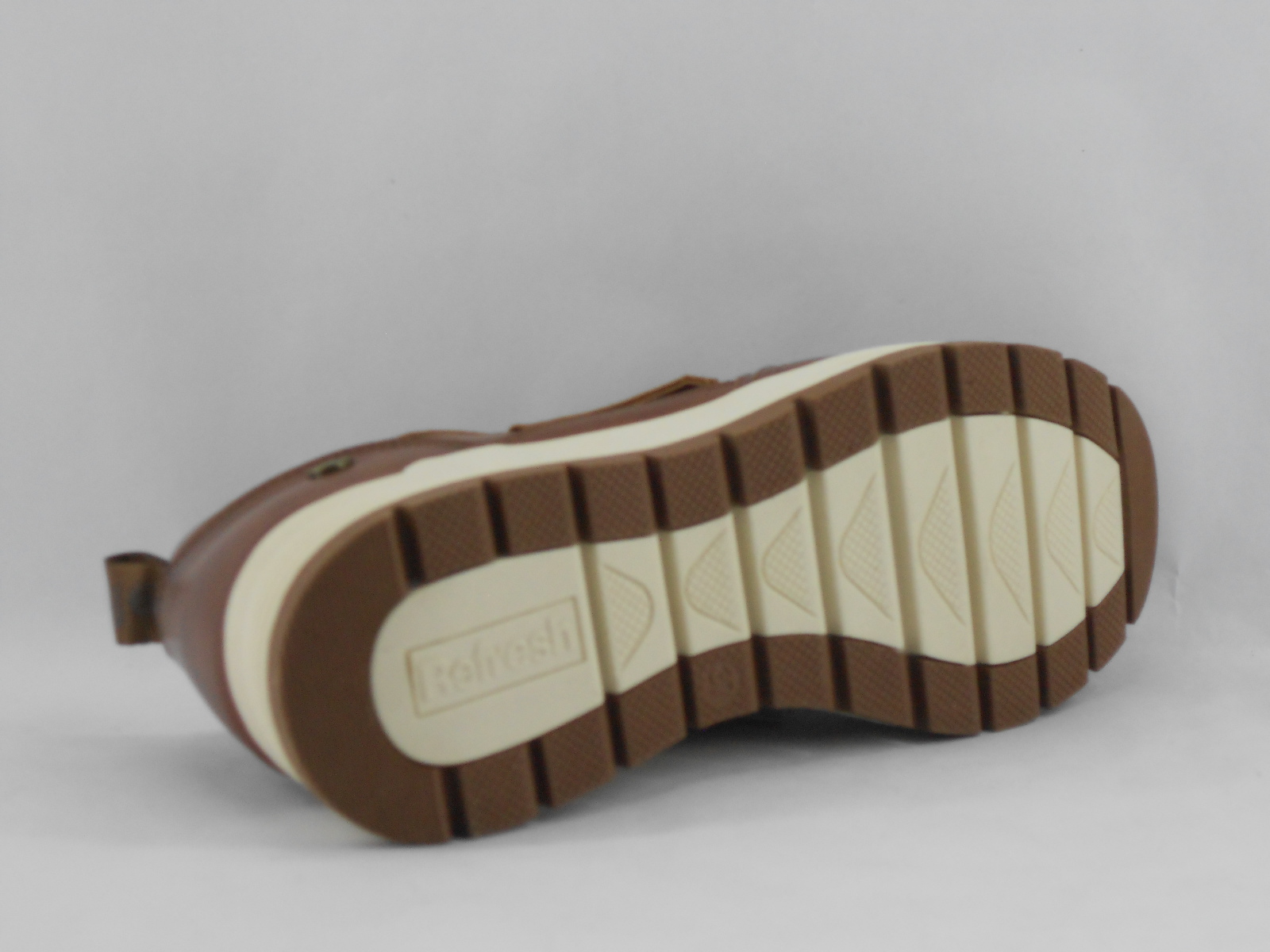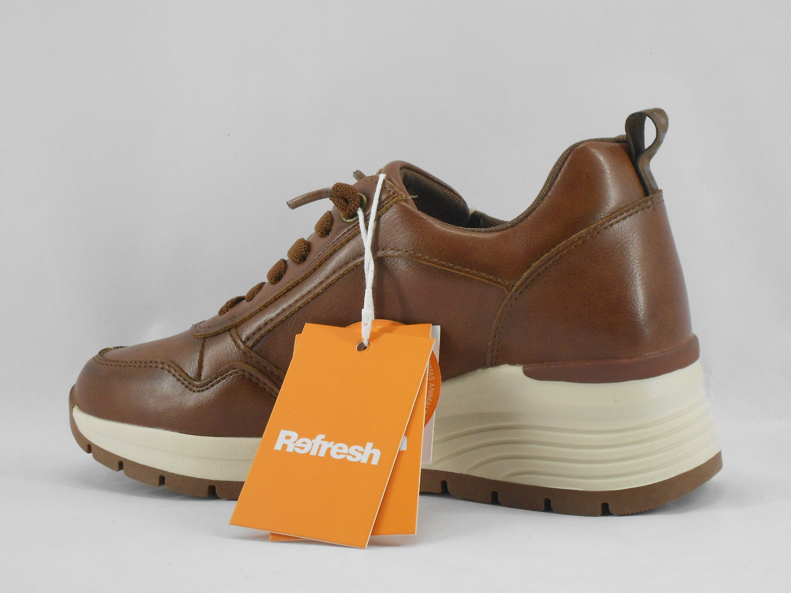 Um modelo elegante e contemporâneo, as sapatilhas Refresh destacam-se pelo tom Camel combinado com detalhes metálicos dourados. Versáteis e modernas, oferecem conforto extra graças à sola em plataforma, tornando-se ideais para looks casuais e urbanos com um toque sofisticado.