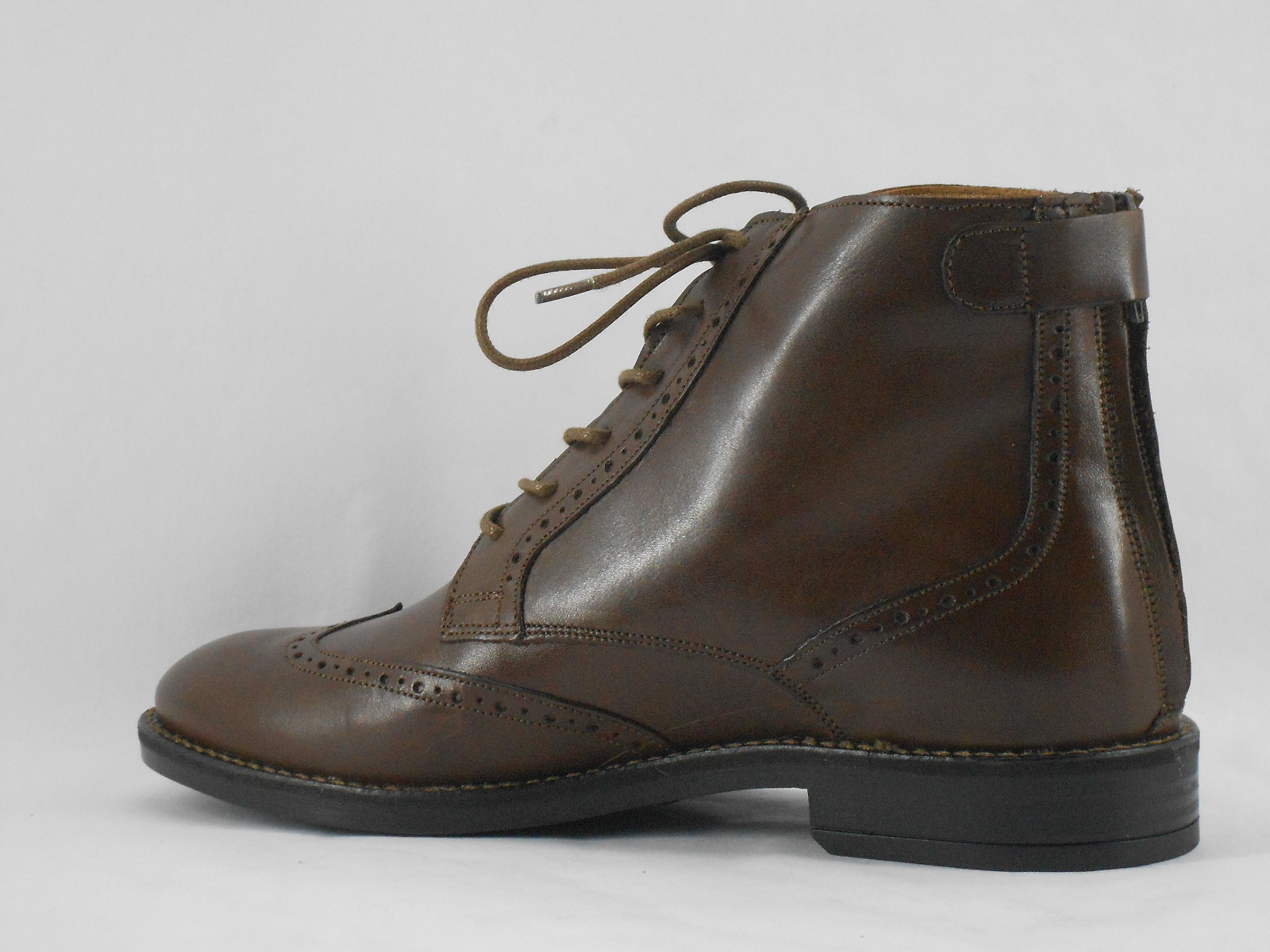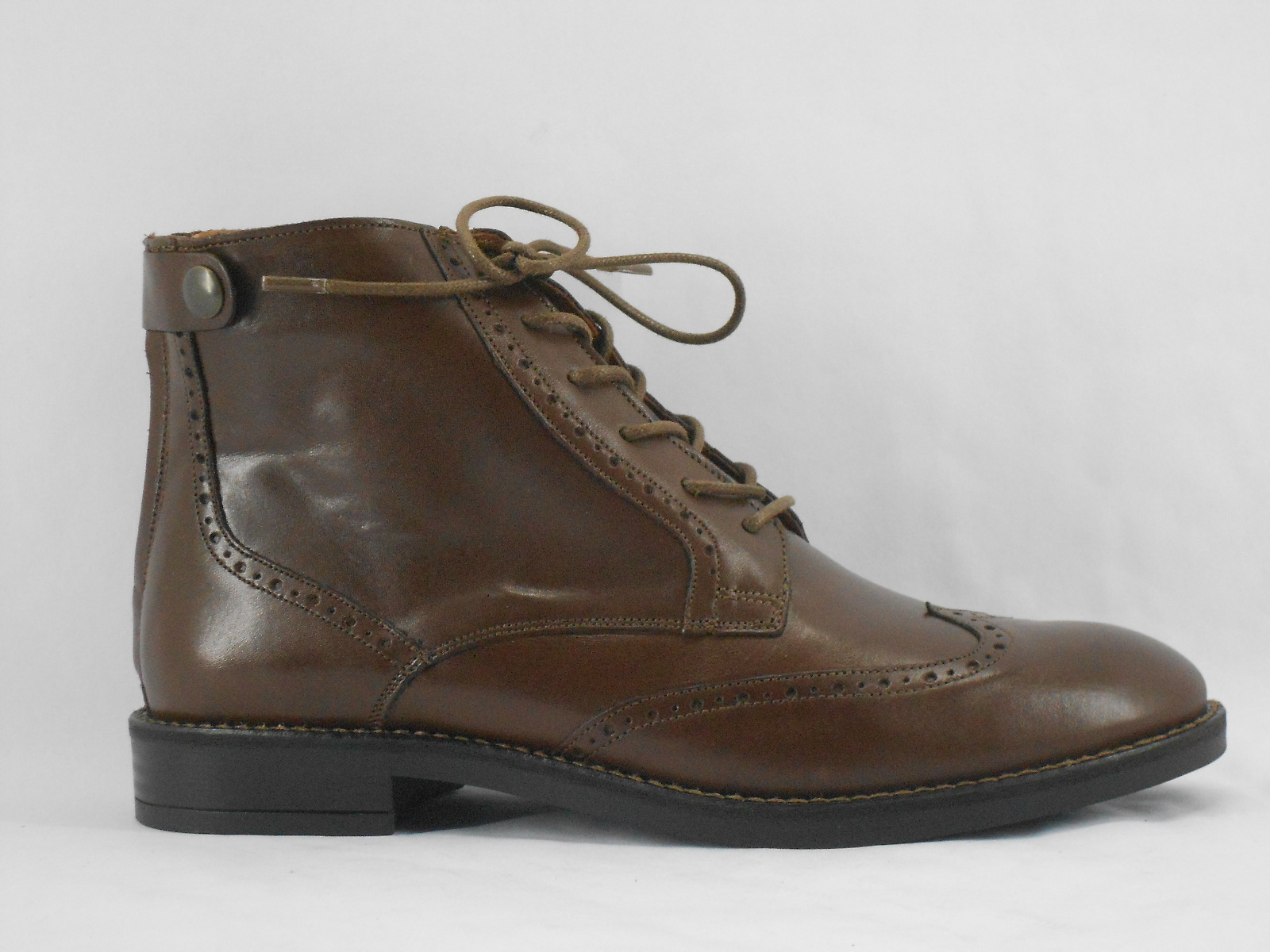 Botins de Senhora em Pele Castanho com Detalhes Brogue