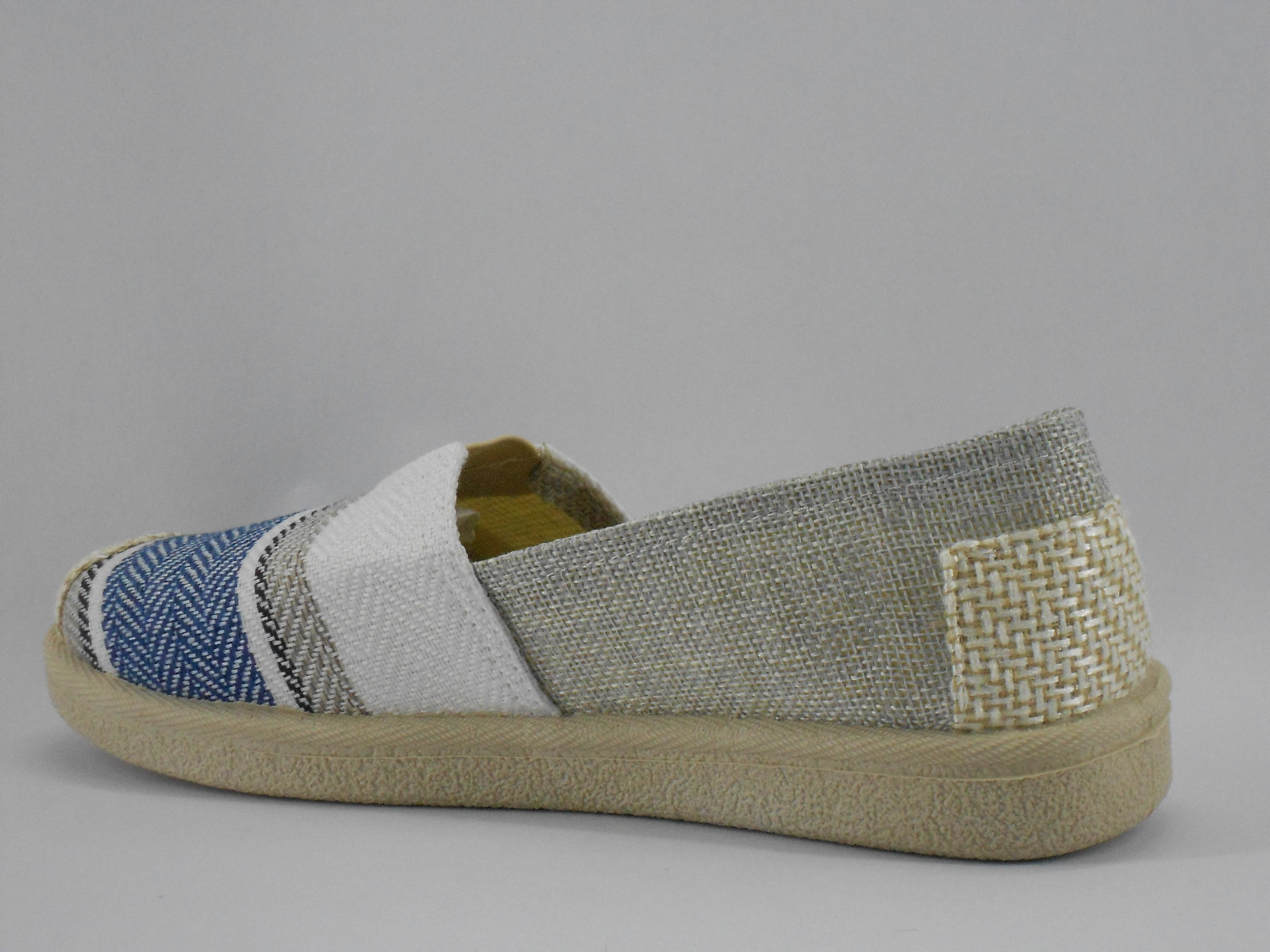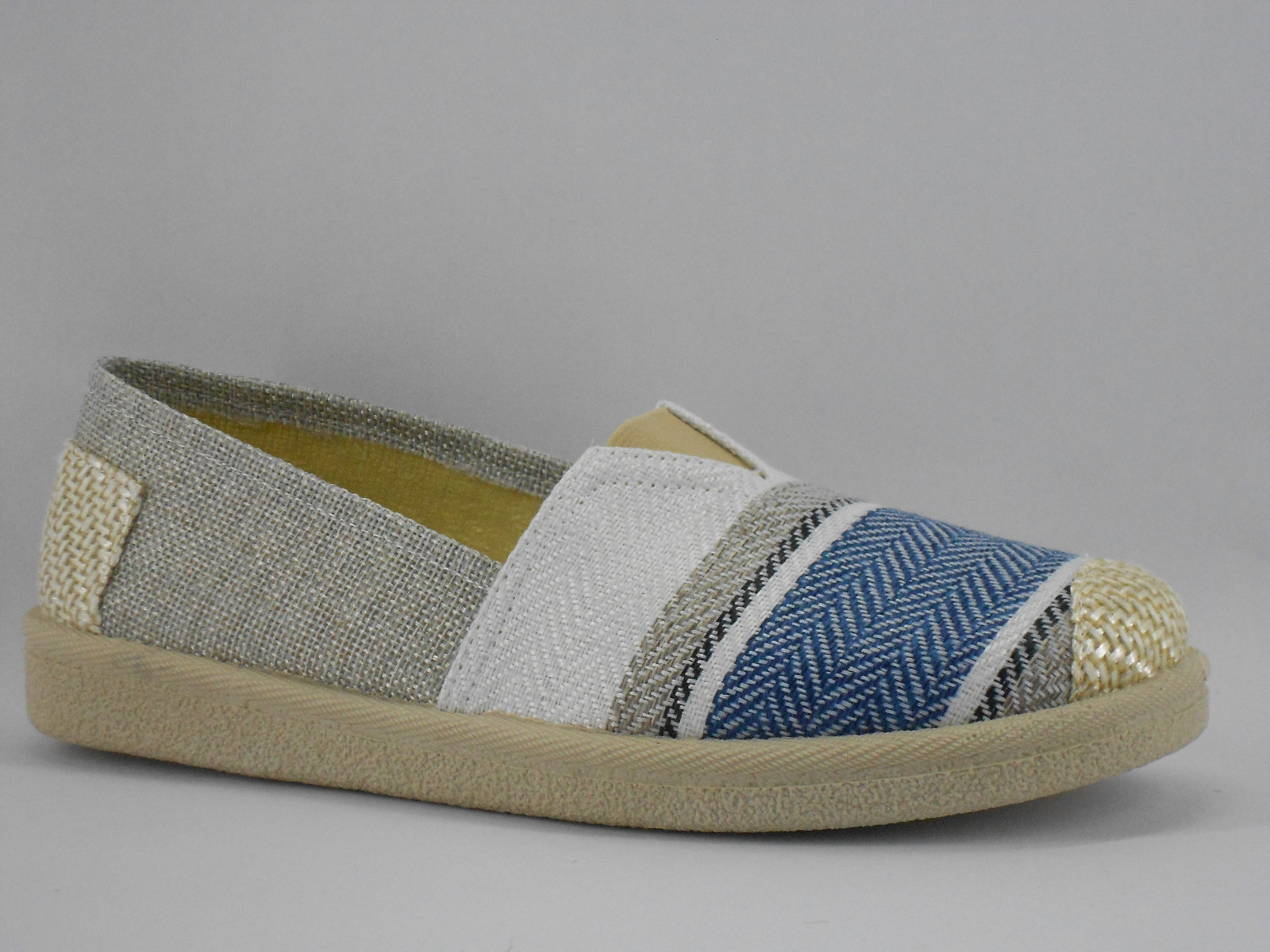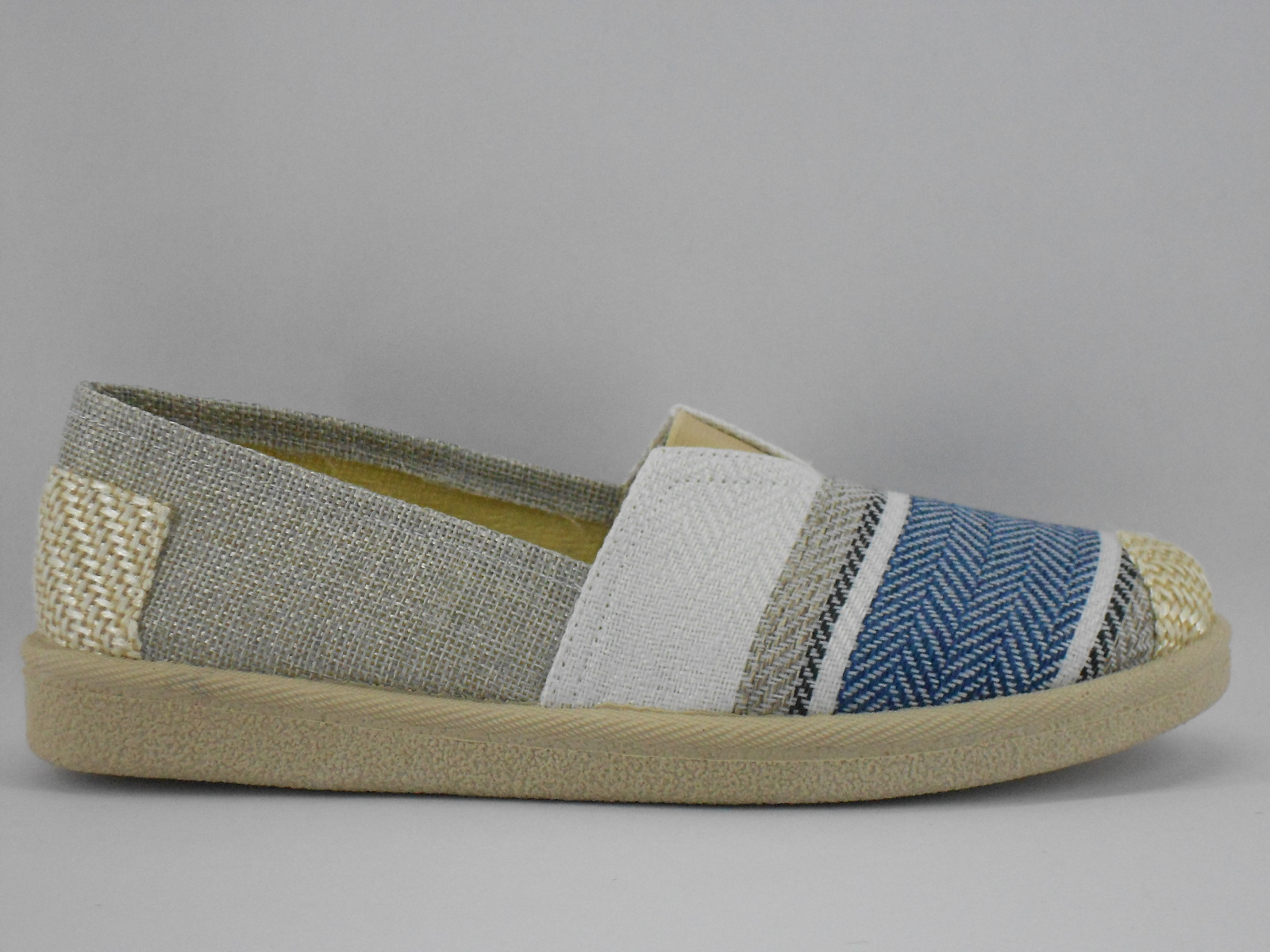 Com um design artesanal e toque moderno, esta alpercata é perfeita para quem procura conforto com um toque de originalidade. Os diferentes padrões e texturas em tons neutros, branco e azul criam um visual descontraído e elegante, ideal para os dias mais quentes.