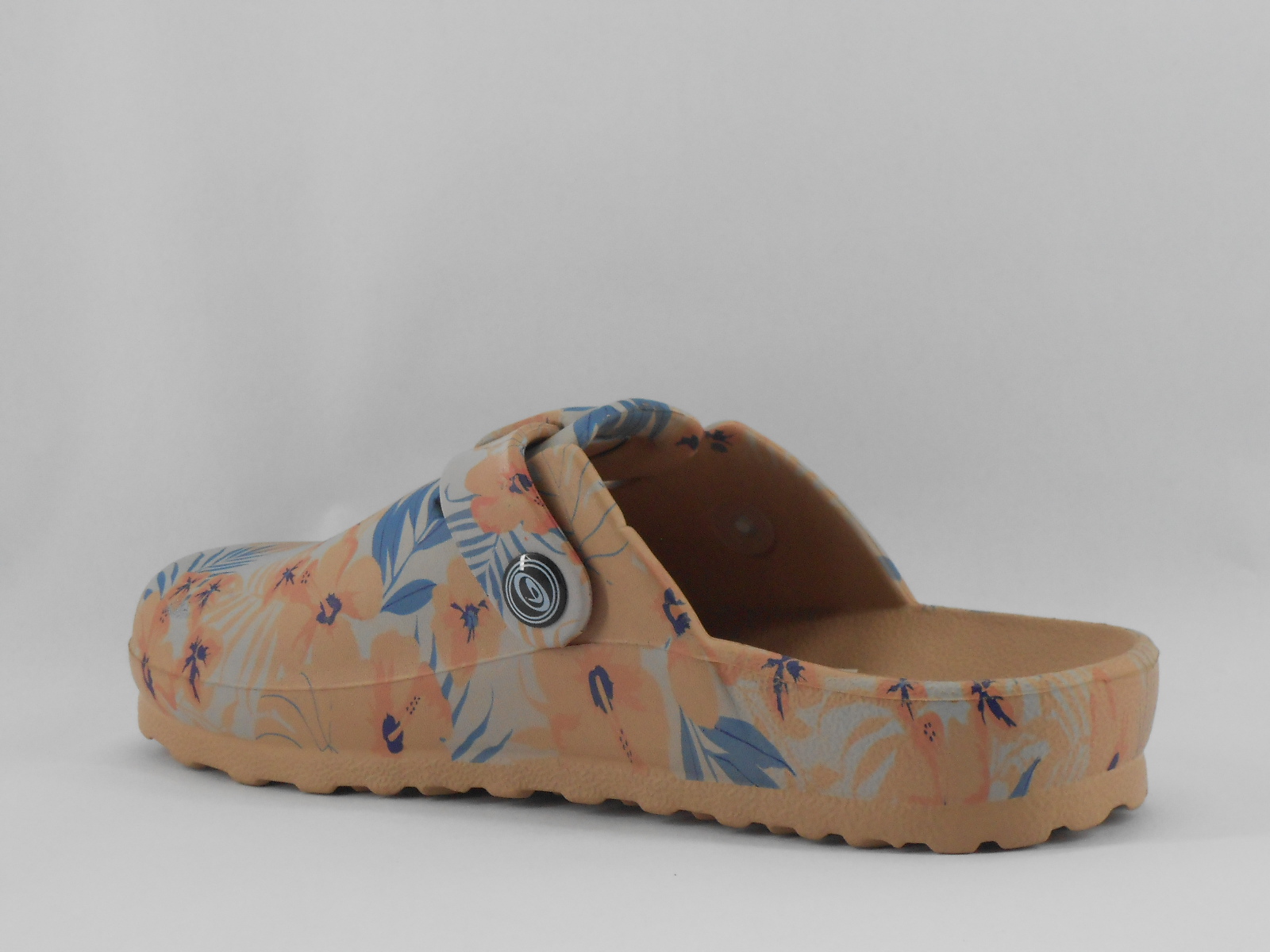 Perfeito para quem valoriza praticidade sem abrir mão do visual moderno, este tamanco unissexo apresenta um design fechado com padrão floral discreto e acabamento monobloco. A fivela lateral ajustável permite uma adaptação perfeita ao pé, ideal para o dia a dia ou momentos de descontração.