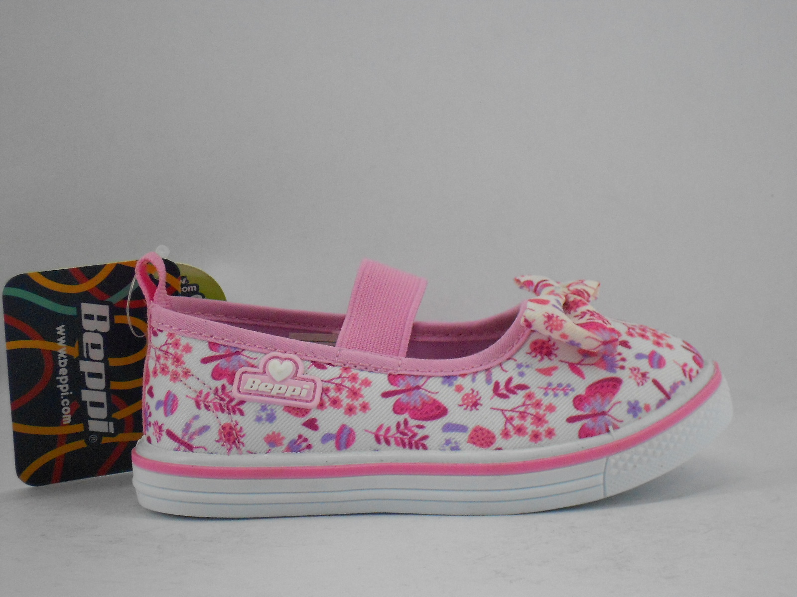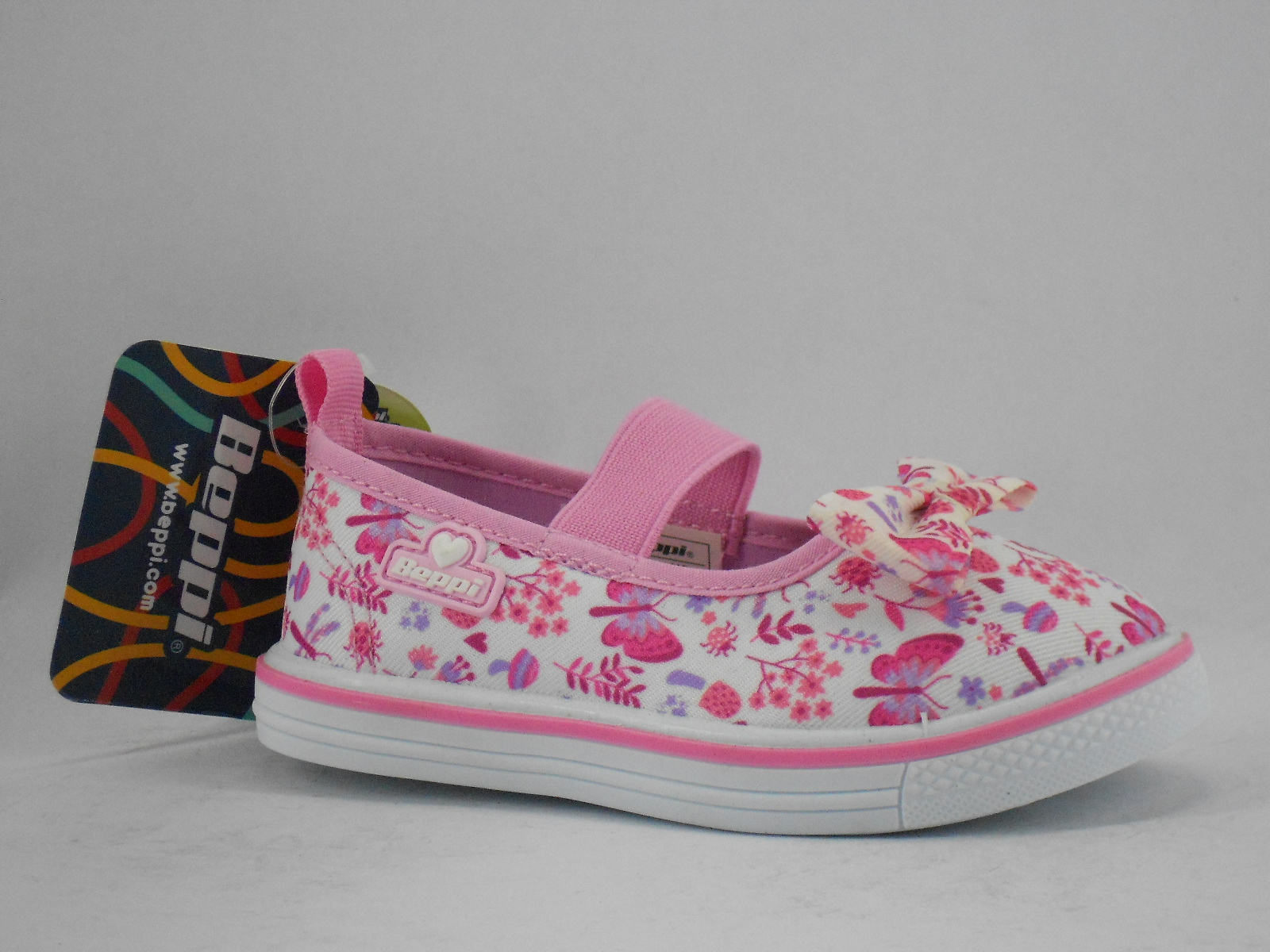 Charmosa e divertida, esta sapatilha infantil da Beppi destaca-se pelo estampado floral em tons de rosa sobre fundo branco, perfeita para compor looks delicados e cheios de cor