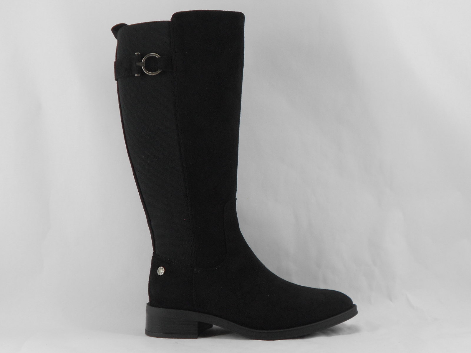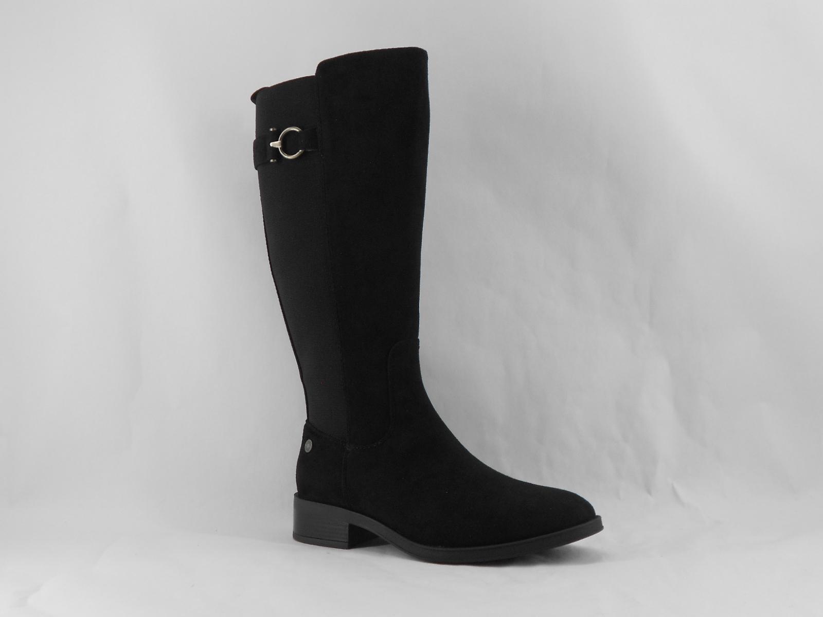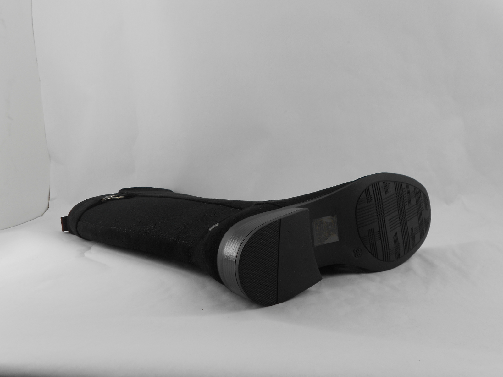 Esta bota alta em tom preto combina estilo clássico e conforto, perfeita para completar looks de outono e inverno. O design elegante é realçado pelo elástico traseiro, que proporciona um ajuste confortável e flexível à perna.