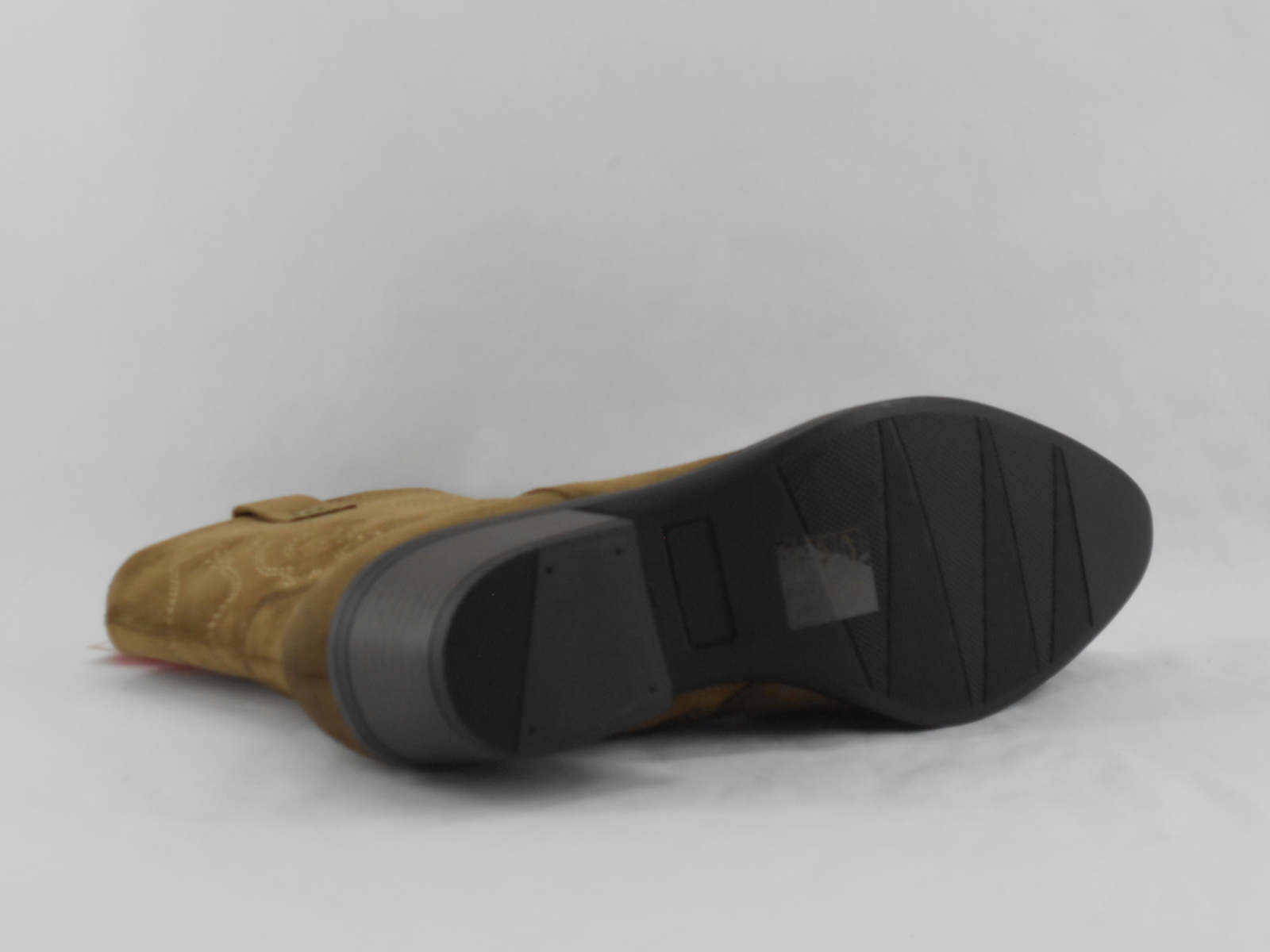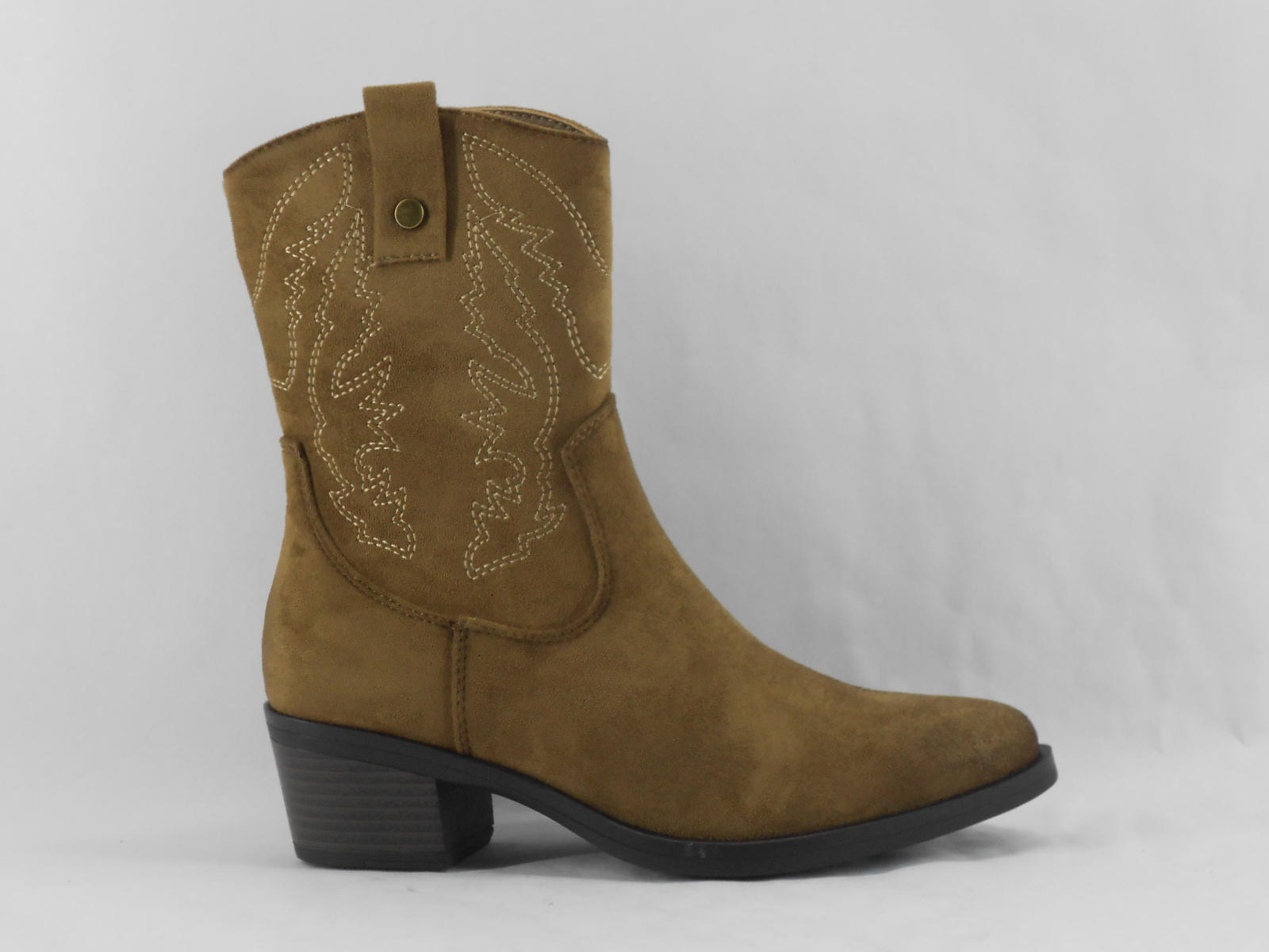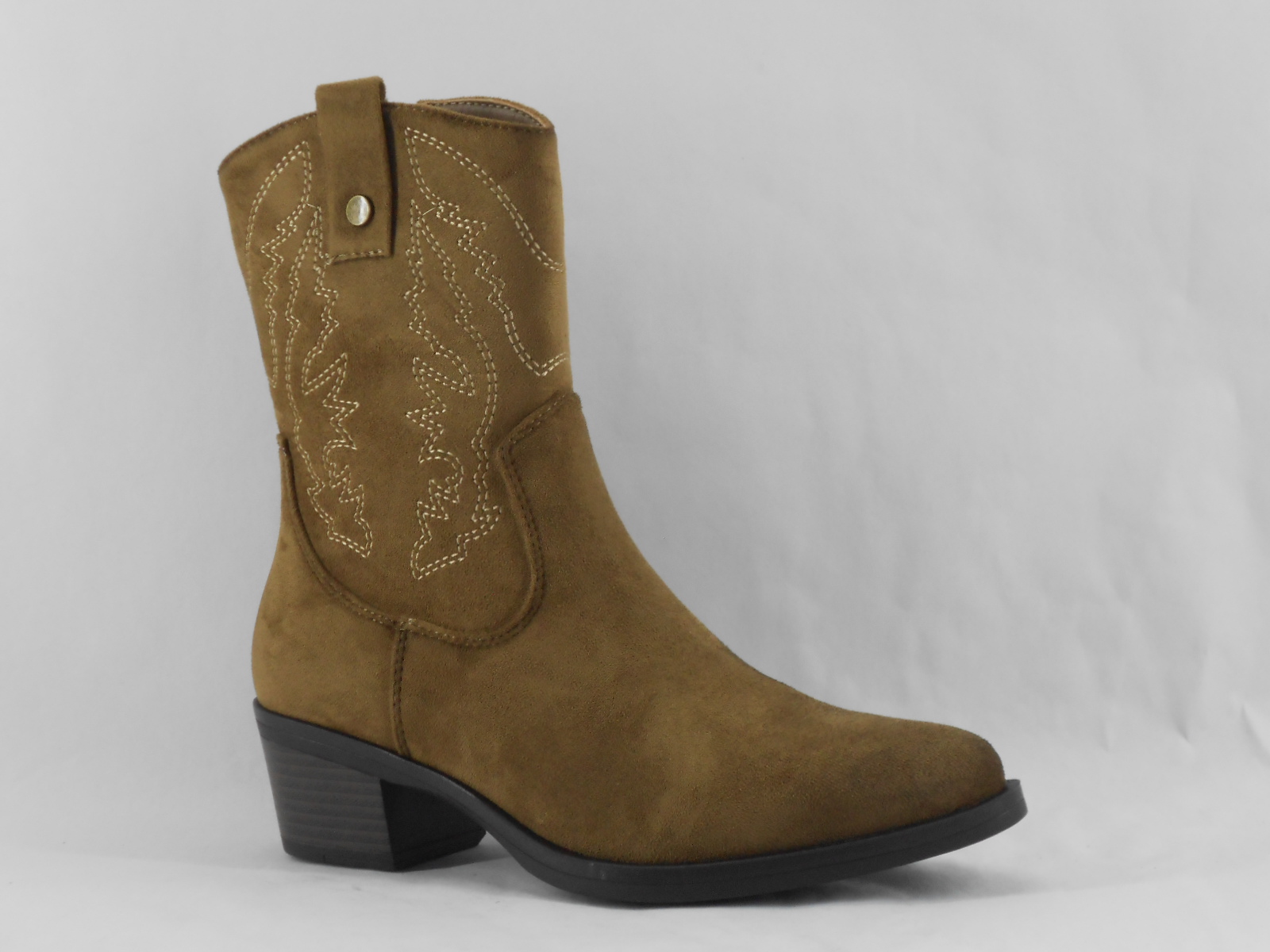 Esta bota feminina camel de cano curto apresenta um estilo western moderno e versátil, ideal para completar visuais casuais com personalidade. O seu design em camurça sintética, aliado aos bordados decorativos laterais, confere um toque rústico e elegante, perfeito para quem procura conforto e estilo no dia a dia.