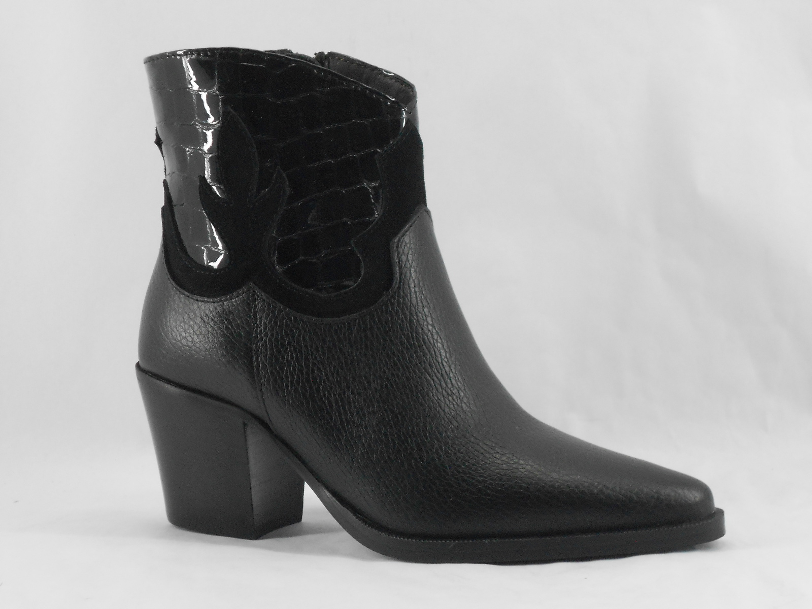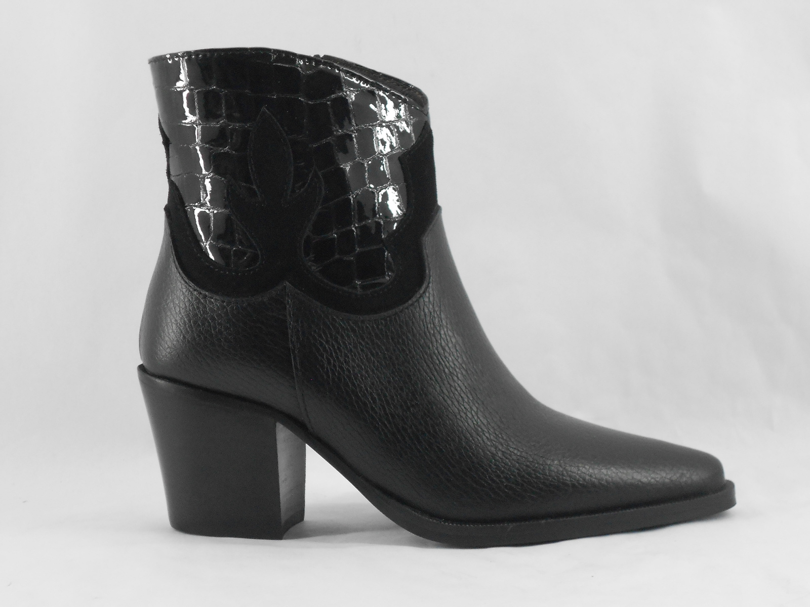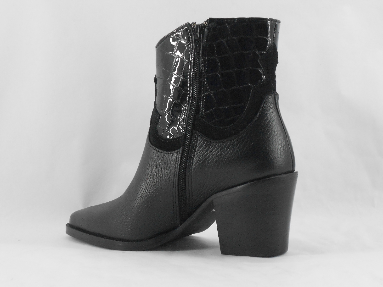 Cheia de atitude e estilo, esta bota feminina traz o charme do design country com um toque moderno. Os recortes em material texturizado e o salto grosso garantem um visual marcante sem abrir mão do conforto