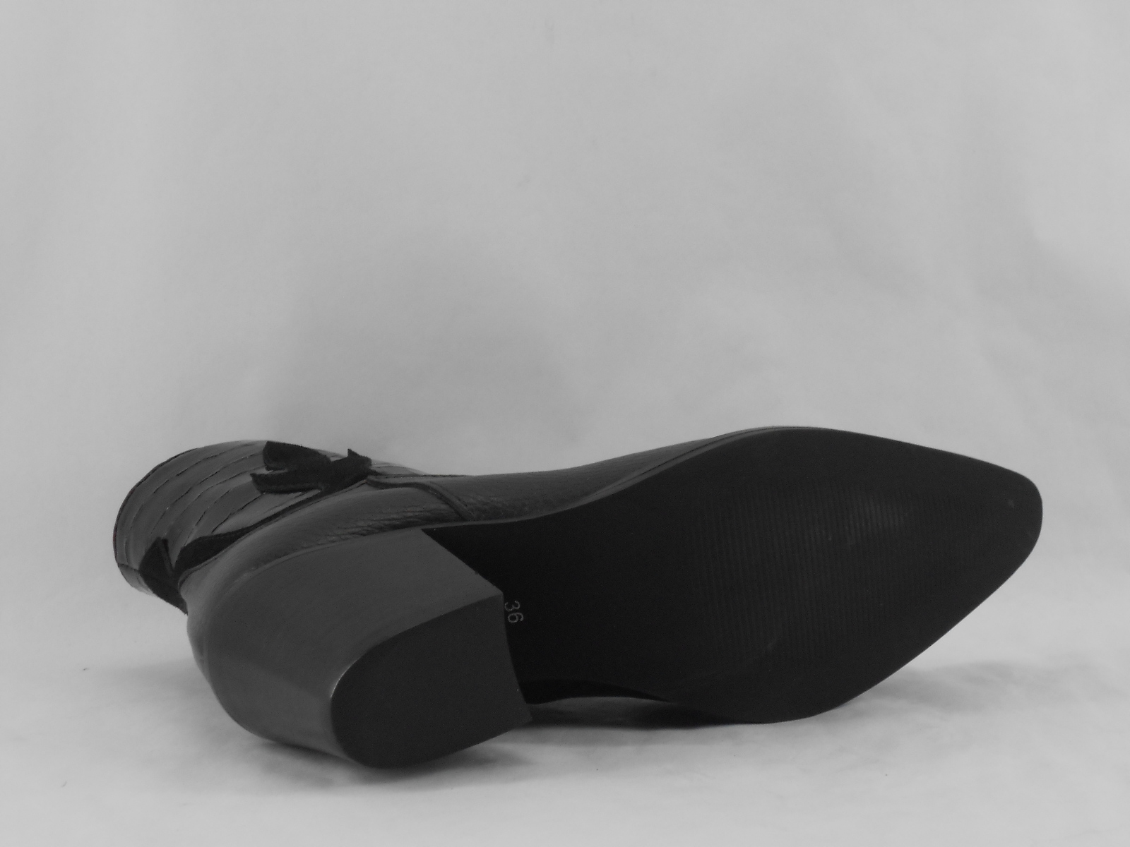 Bota Feminina Texana com Recortes e Salto Grosso – Preta