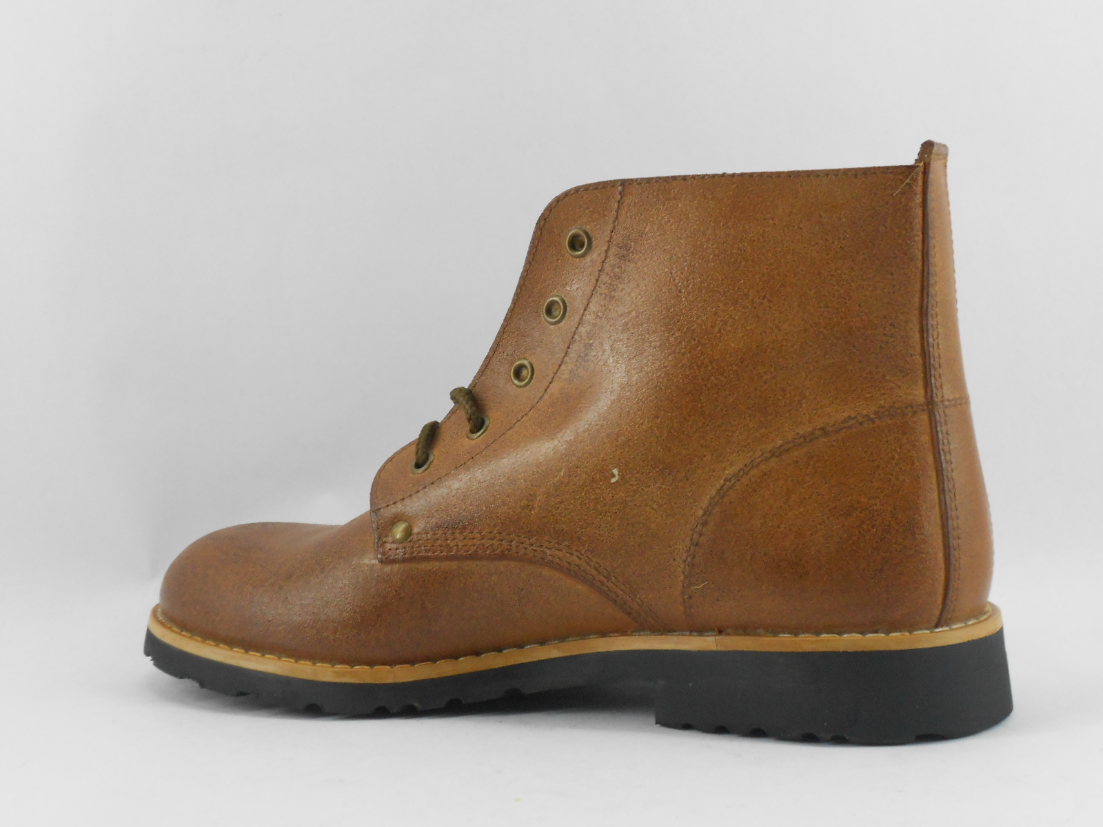Os atacadores em tom escuro contrastam subtilmente com o couro, enquanto a sola robusta proporciona estabilidade e conforto em qualquer ocasião