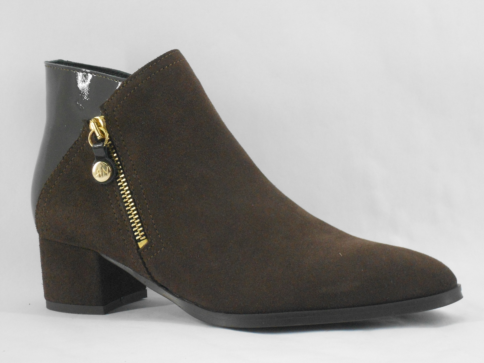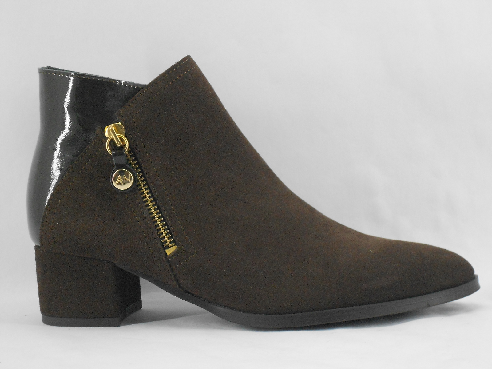 Este botim castanho em camurça combina estilo e praticidade, sendo perfeito para completar looks elegantes e modernos. O fecho lateral dourado acrescenta um toque sofisticado, enquanto o salto médio garante conforto e estabilidade em cada passo.