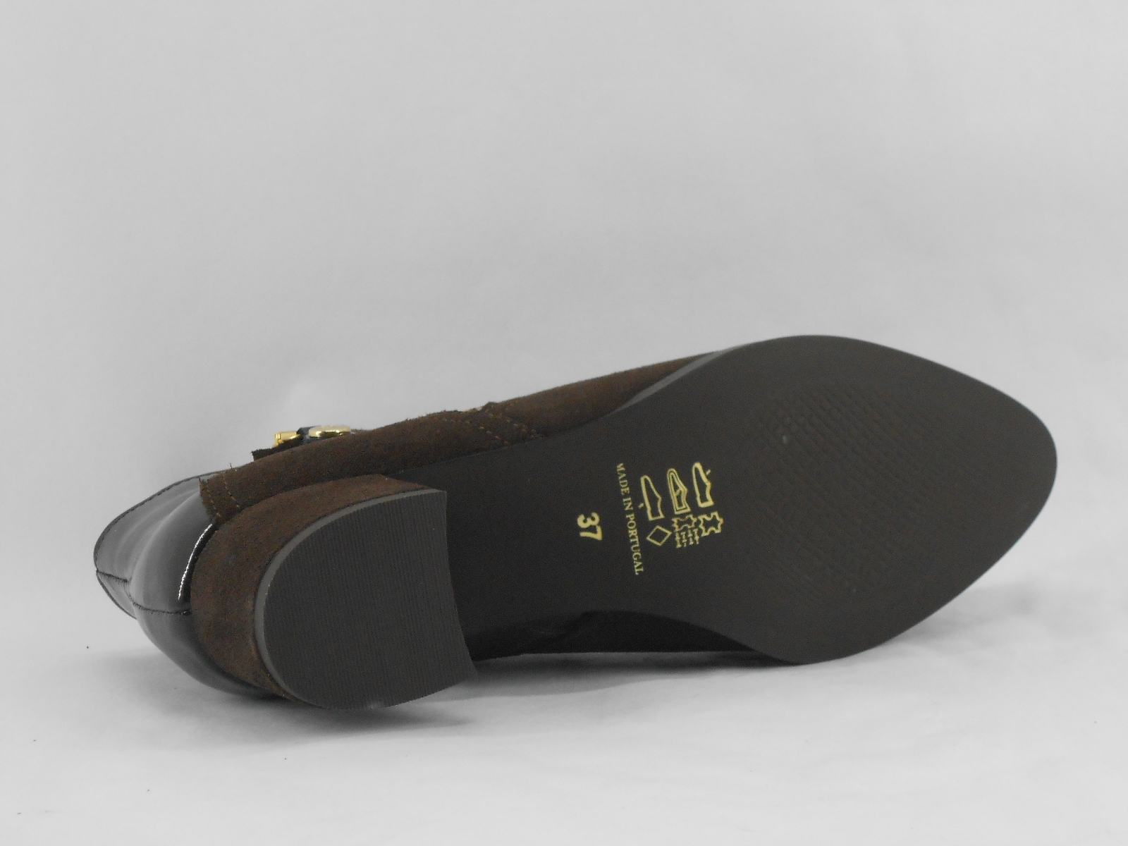 Botim Castanho em Camurça com Fecho Dourado – Elegância e Conforto
