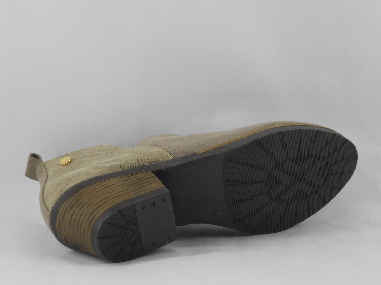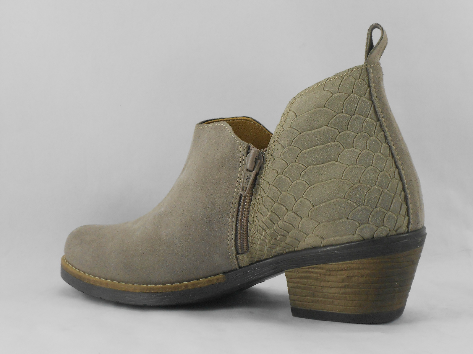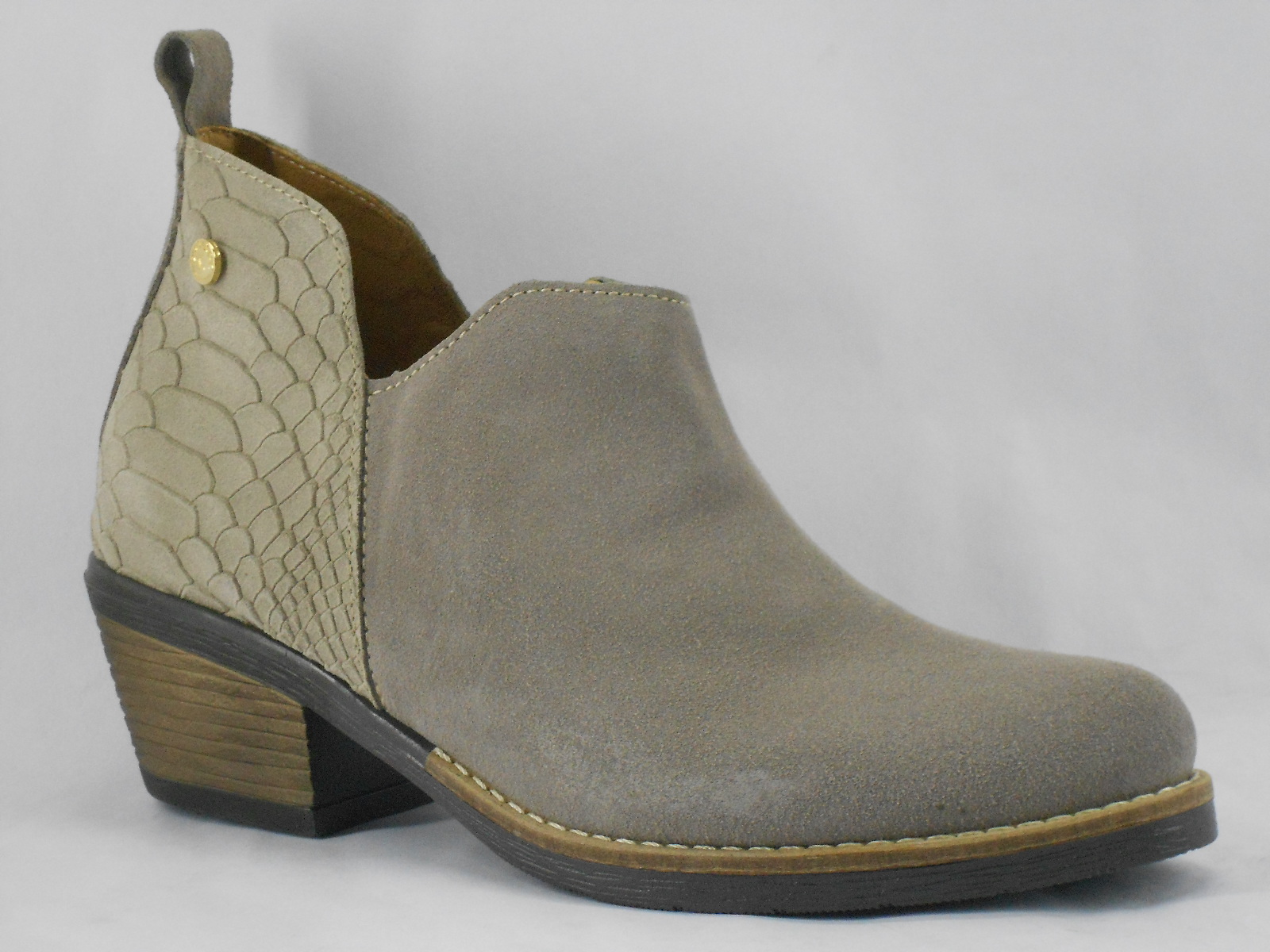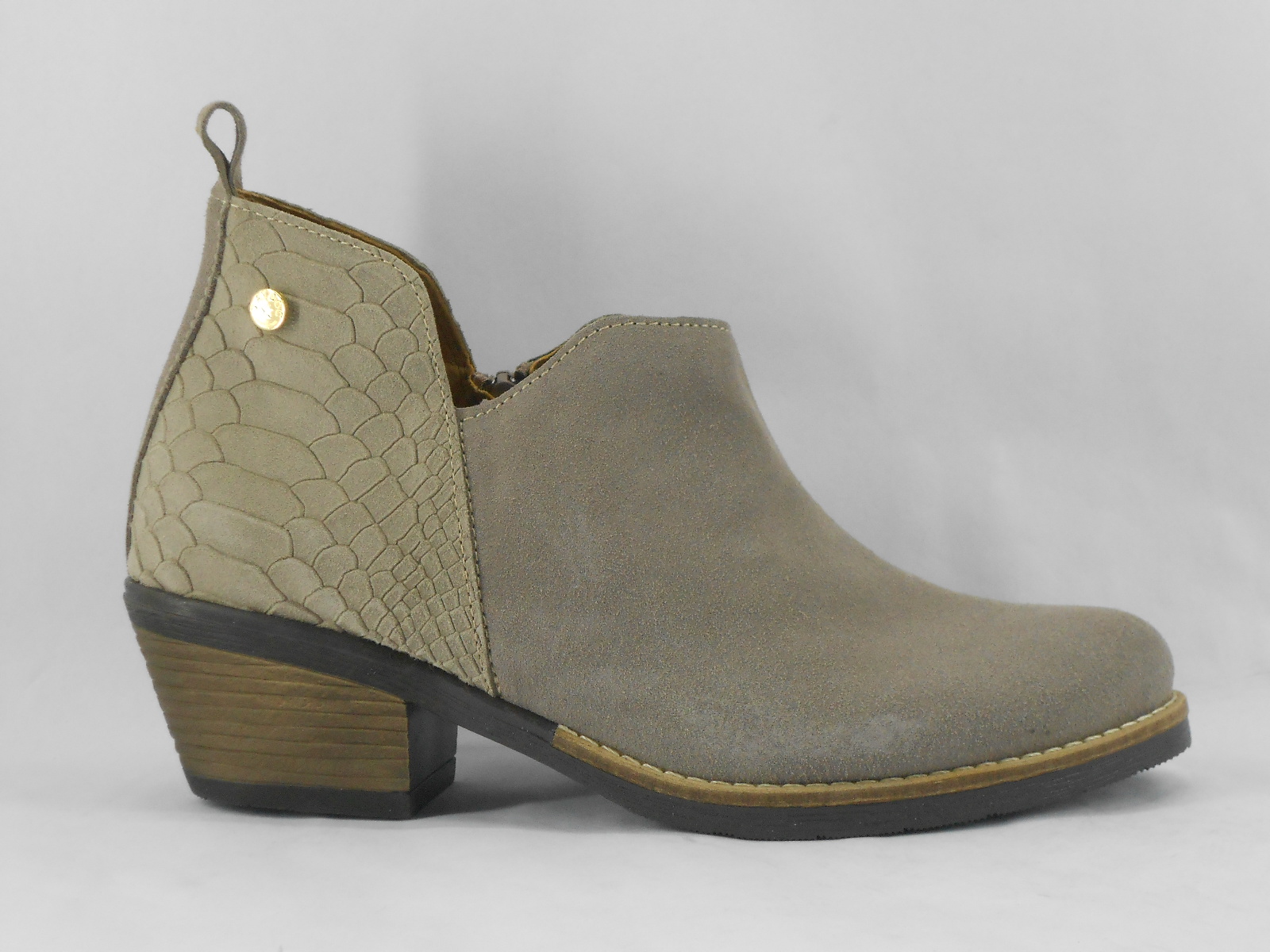 Botim Feminino Taupe em Camurça com Detalhe Texturizado