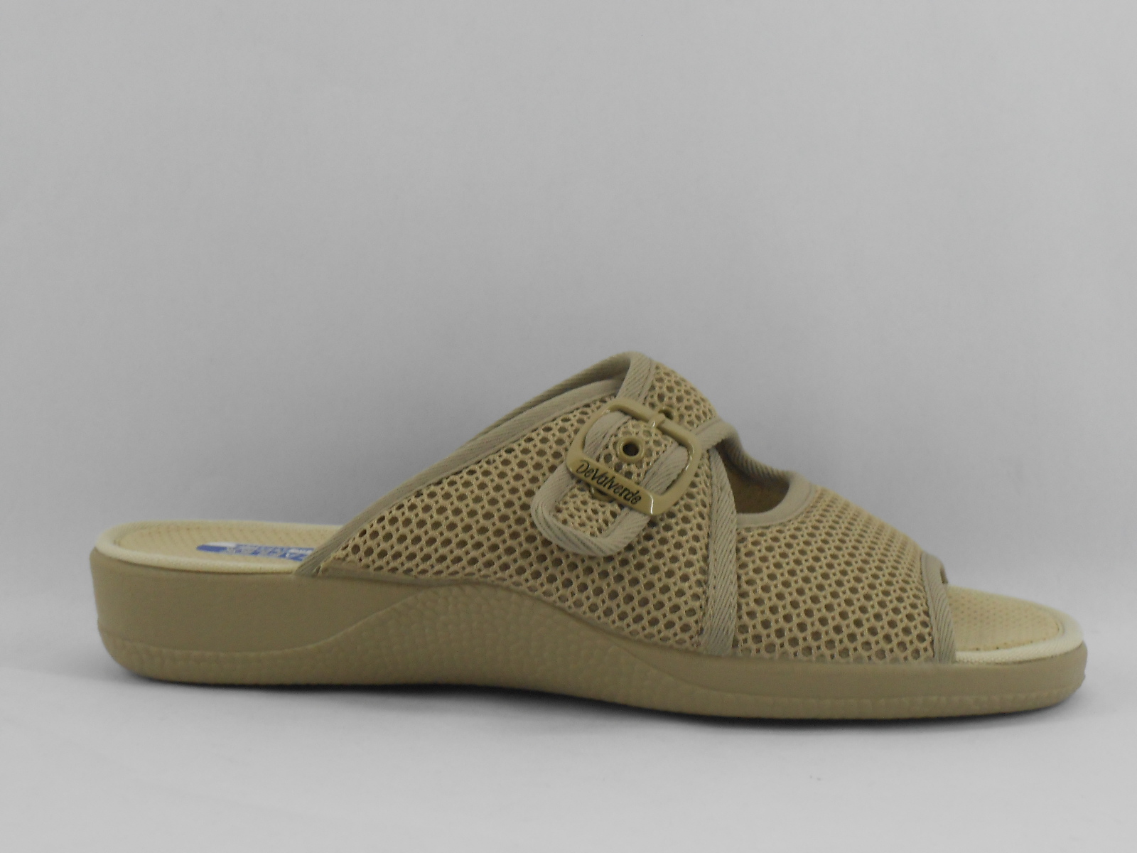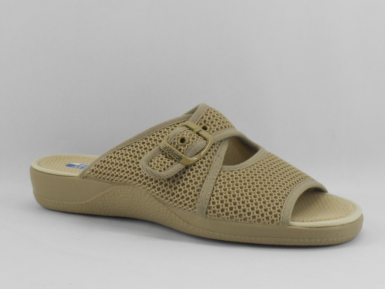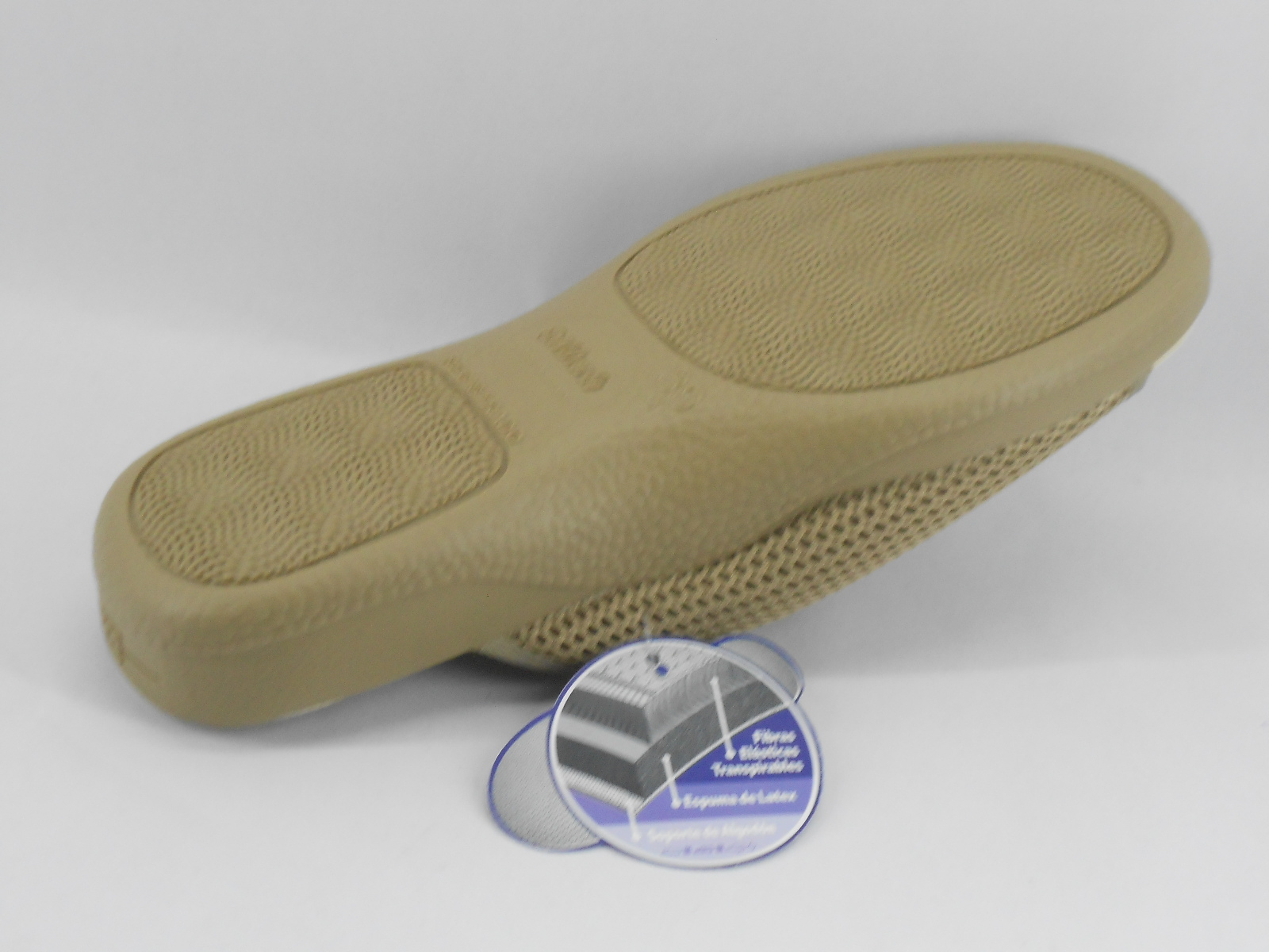 Funcional e leve, esta sandália conforto em tecido bege é ideal para quem procura bem-estar no dia a dia sem abrir mão da praticidade