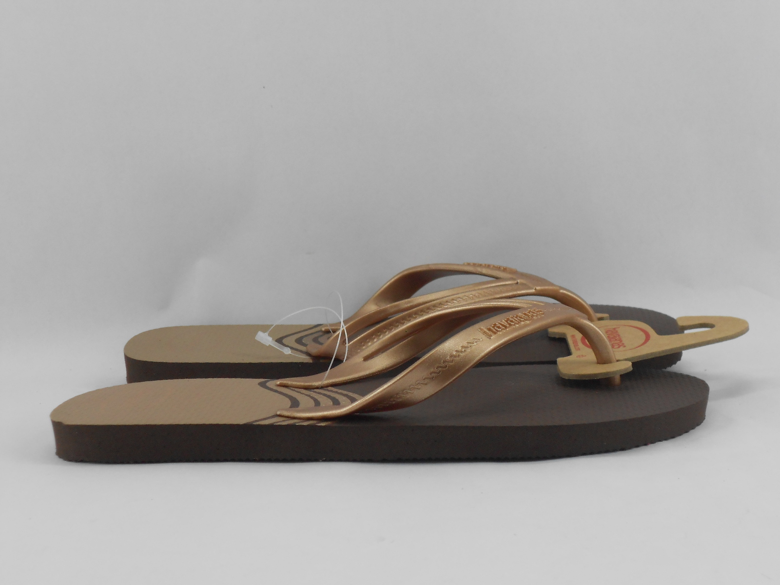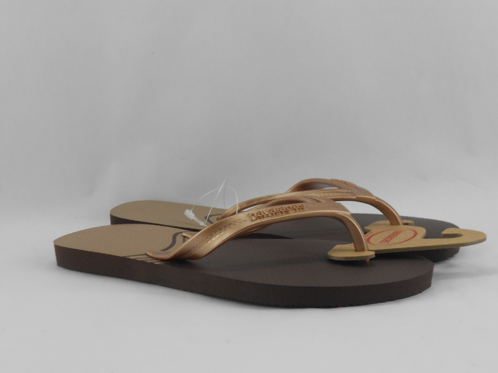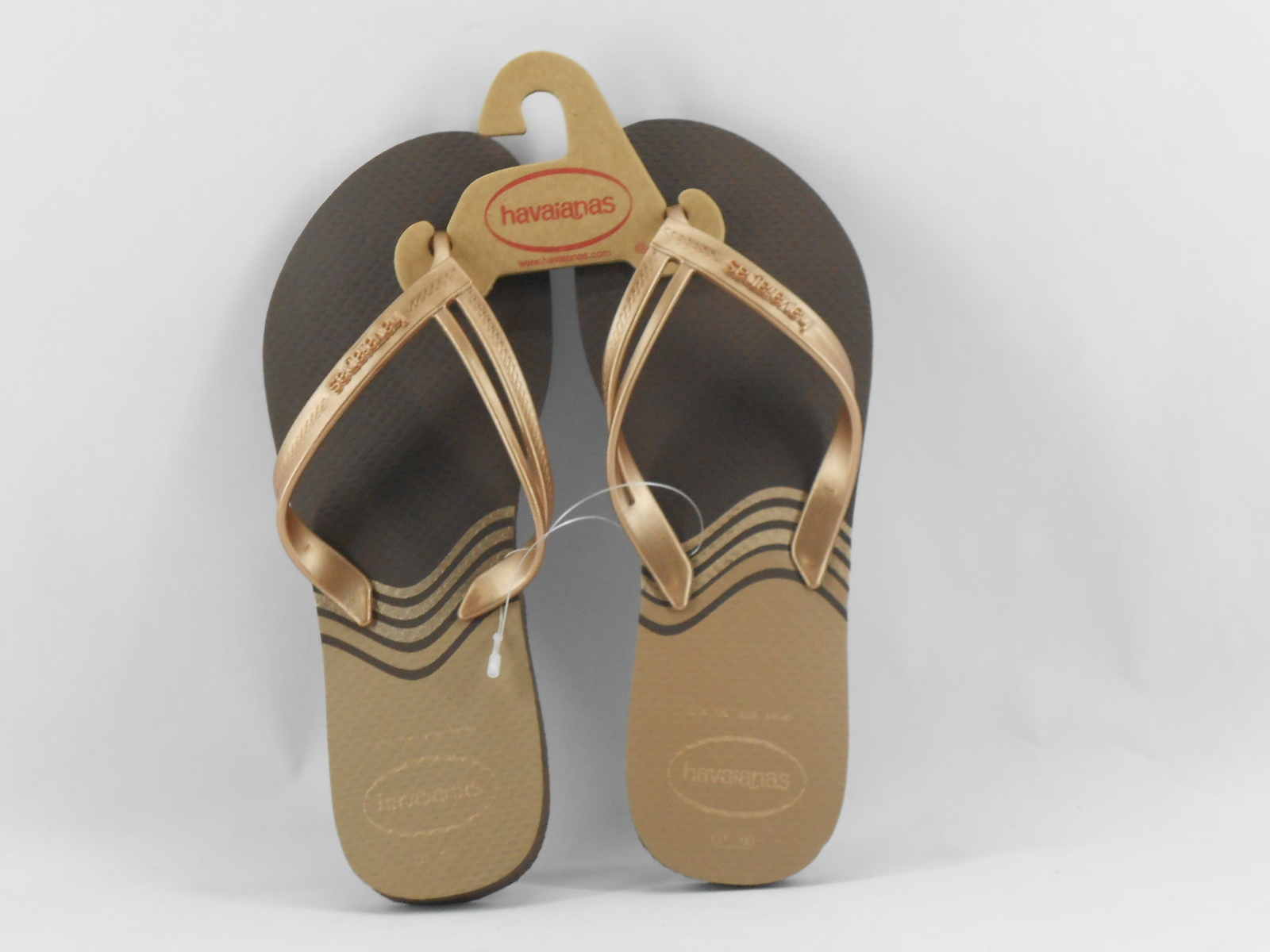 Chinelo Feminino Havaianas Castanho com Tiras Metalizadas