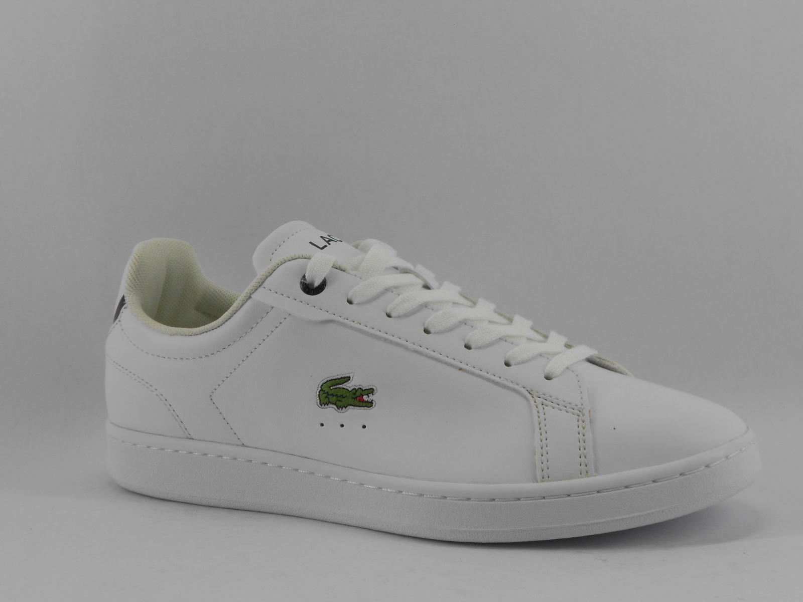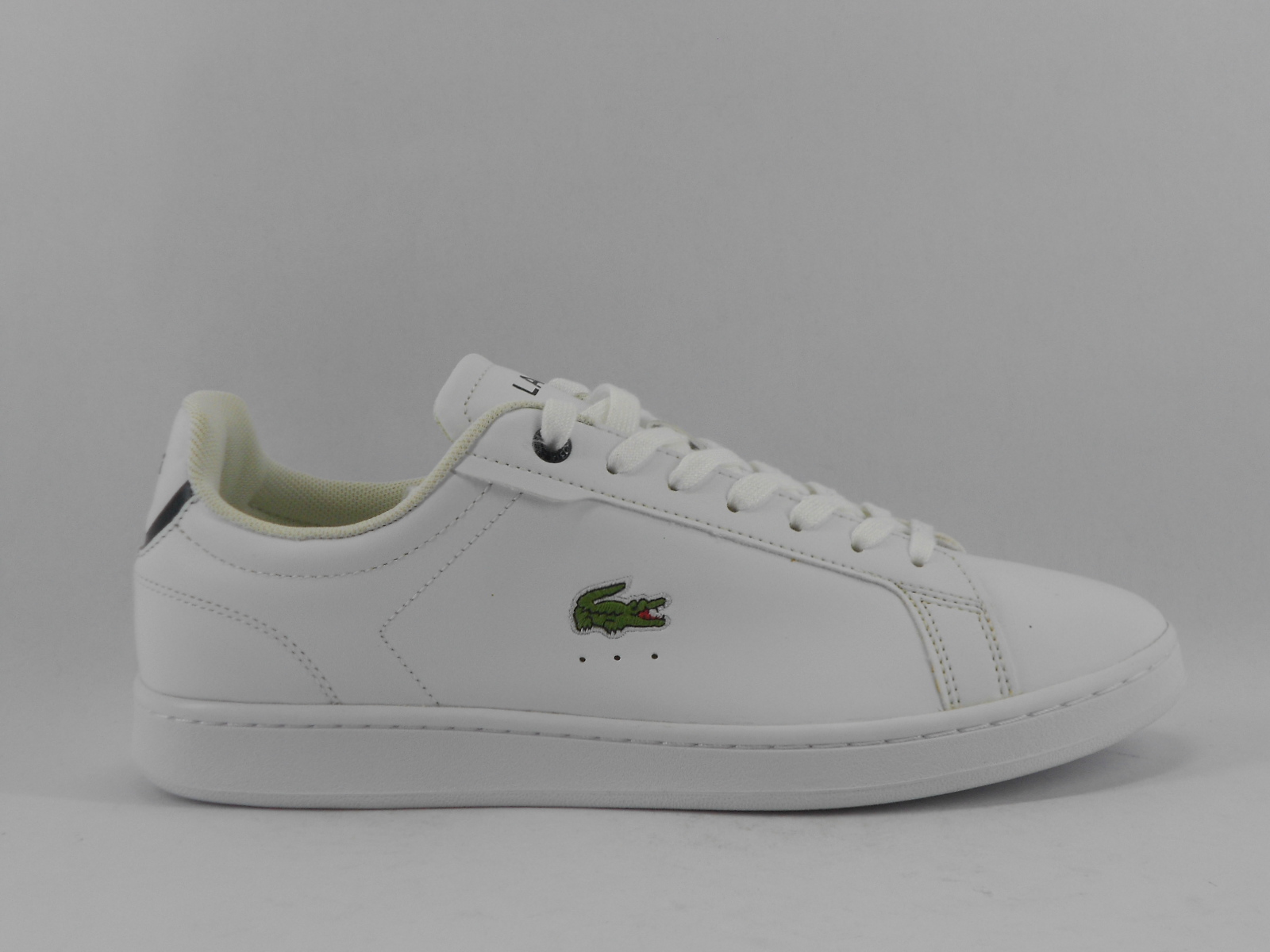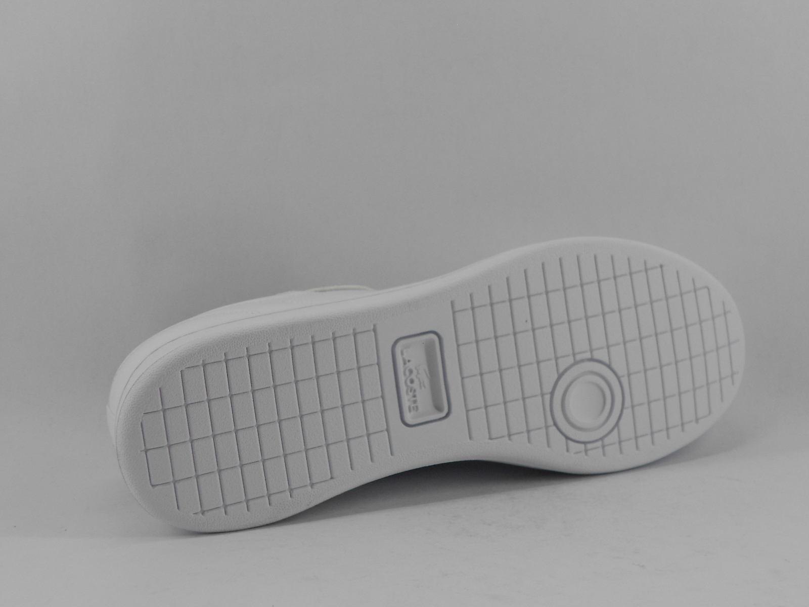 Este ténis branco da marca Lacoste apresenta um design minimalista e elegante, realçado pelo icónico logótipo do crocodilo bordado na lateral e detalhe em preto no calcanhar