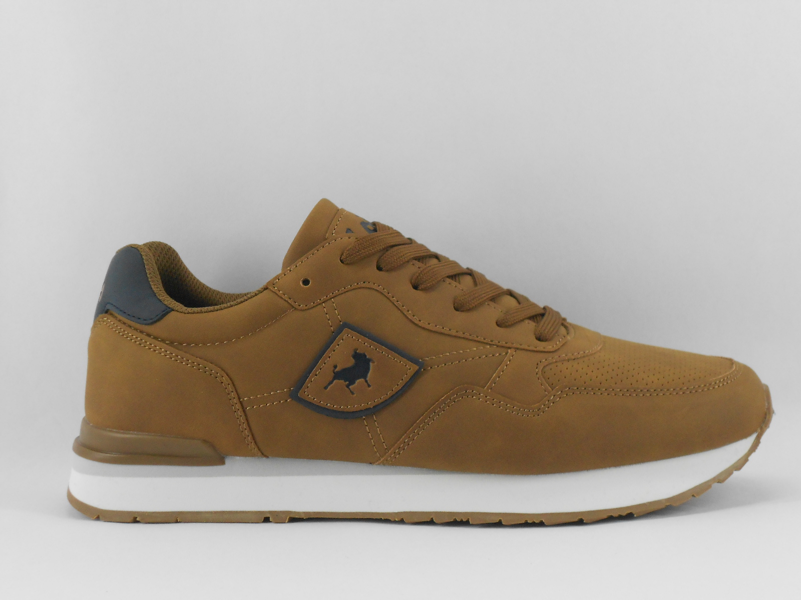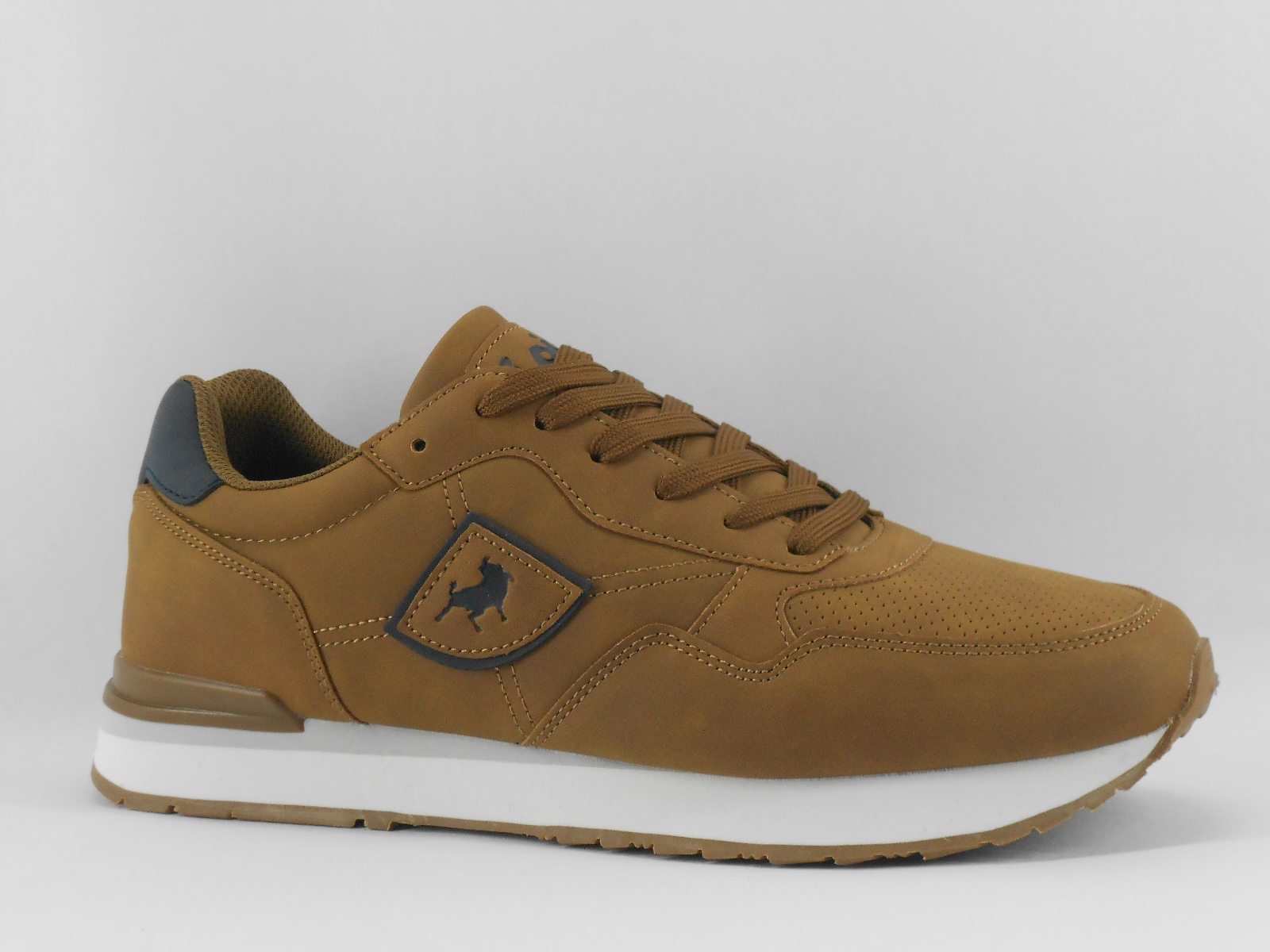 Este ténis da marca Lois combina o tom camel com apontamentos azul escuro, resultando num visual moderno e elegante, perfeito para looks casuais com um toque urbano