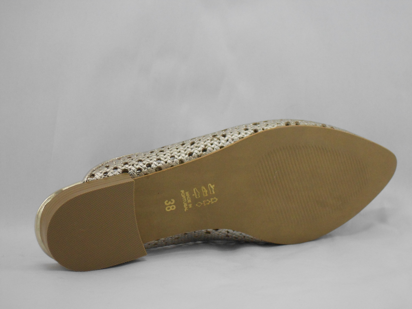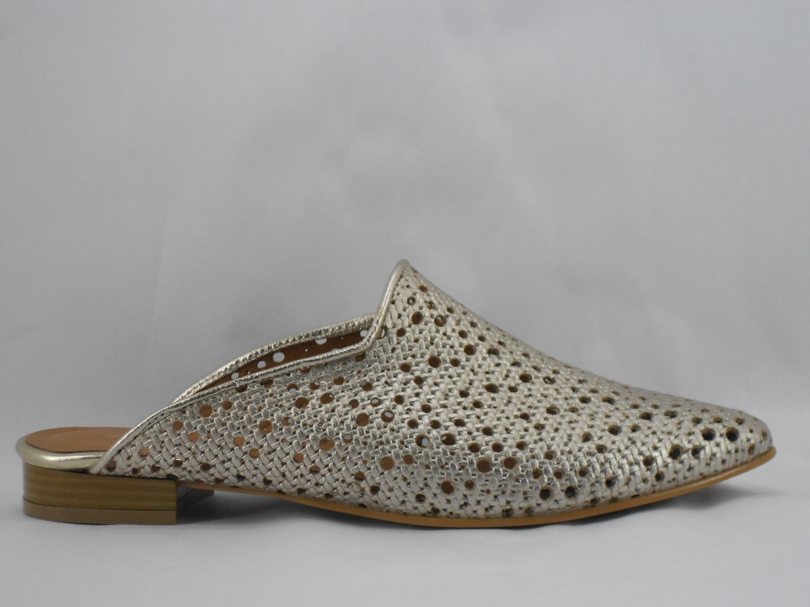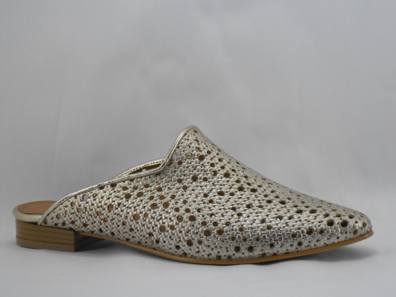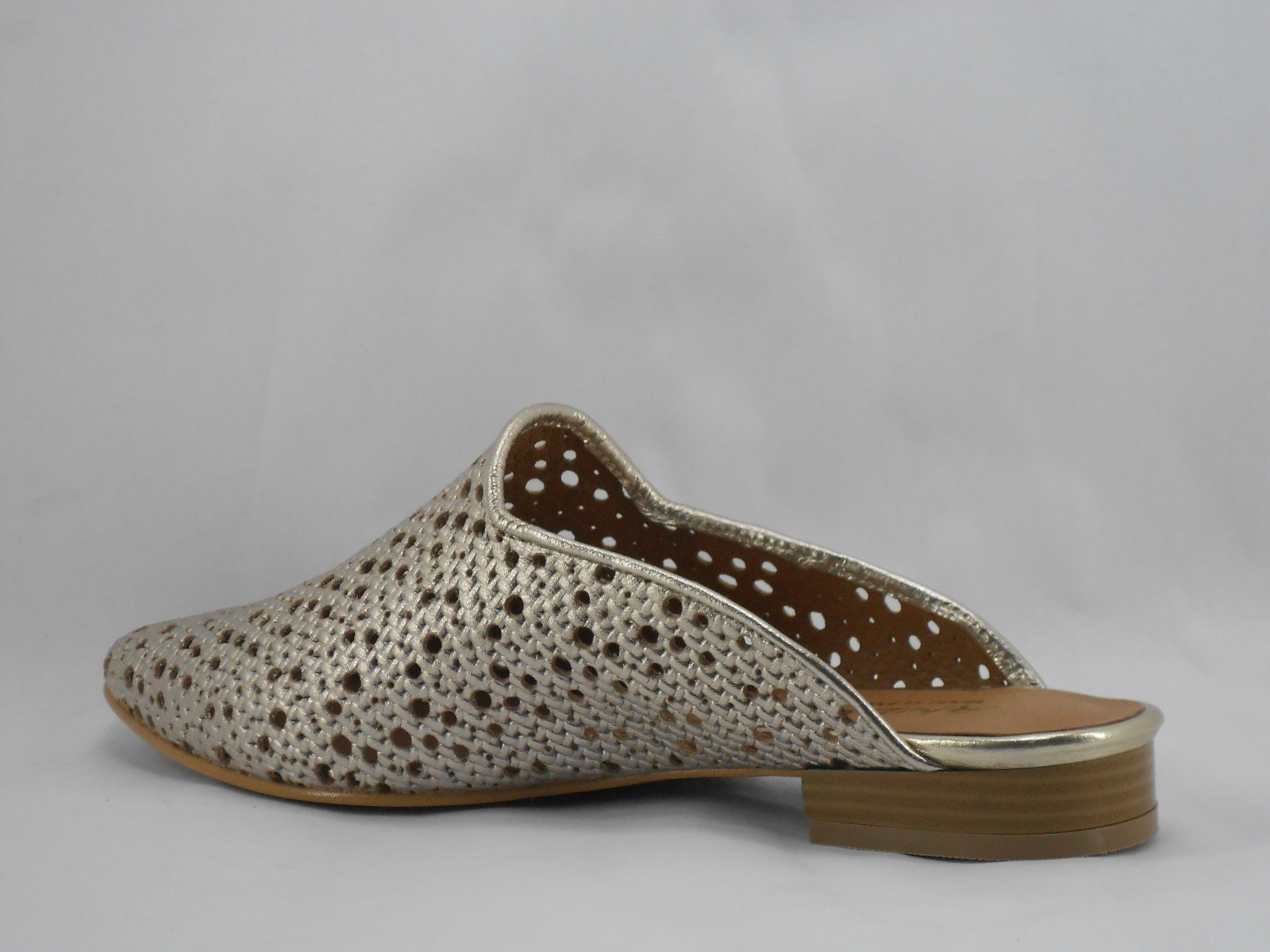 Este mule bronze destaca-se pelo seu design elegante e leve, ideal para os dias mais quentes. O padrão perfurado ao longo de todo o exterior confere um toque sofisticado e permite maior respirabilidade, garantindo conforto ao longo do dia.
