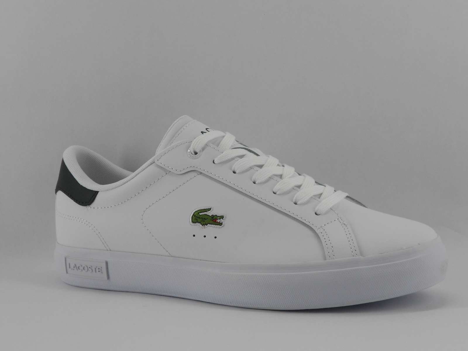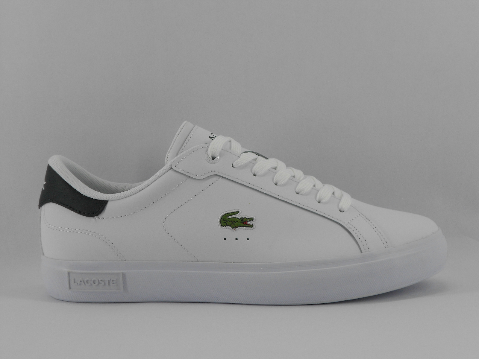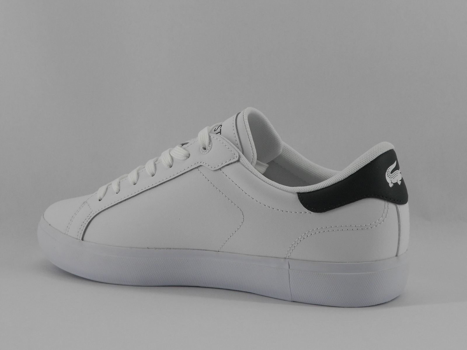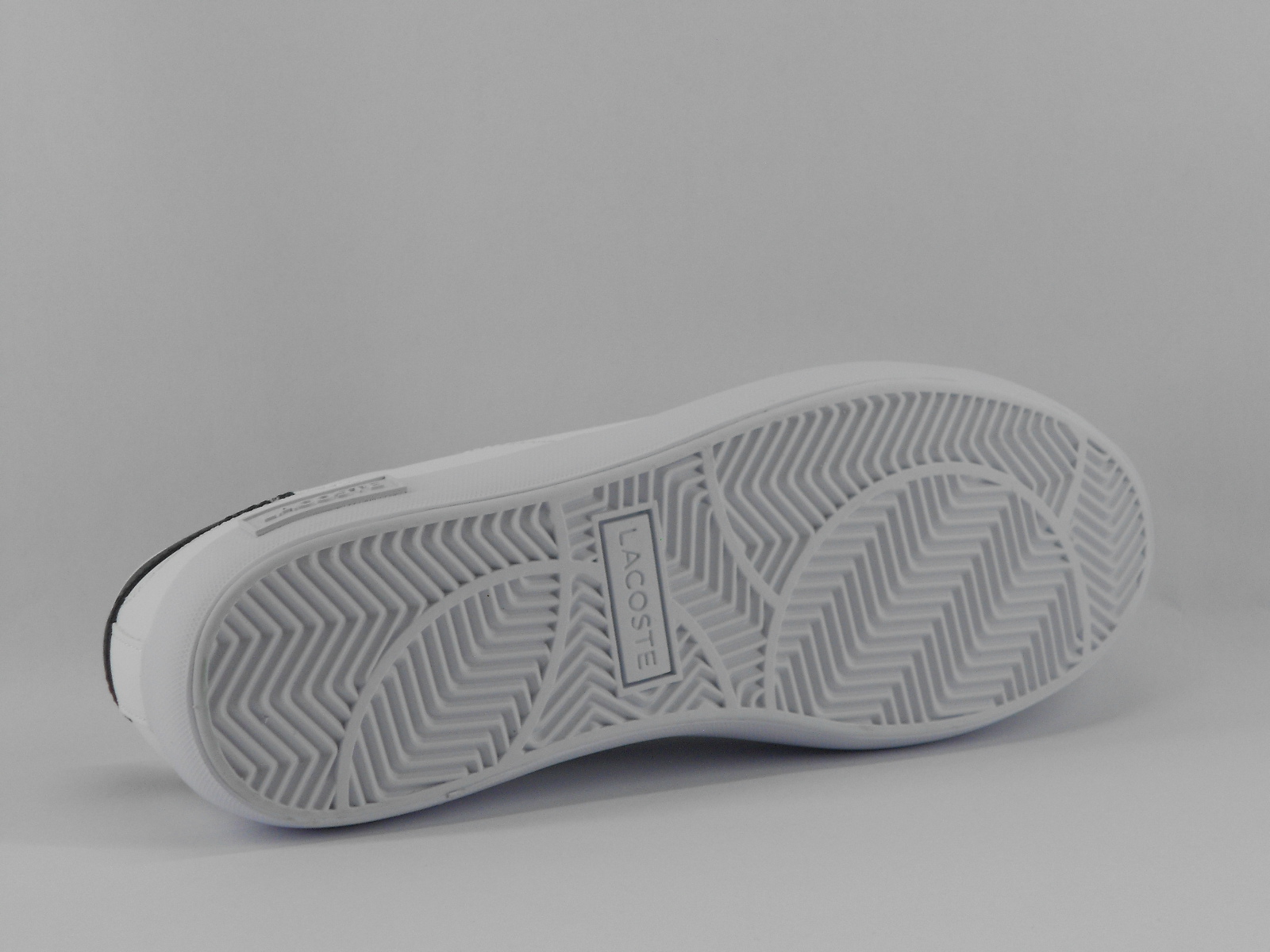 Este ténis branco da marca Lacoste apresenta um design minimalista e elegante, realçado pelo icónico logótipo do crocodilo bordado na lateral e detalhe em preto no calcanhar