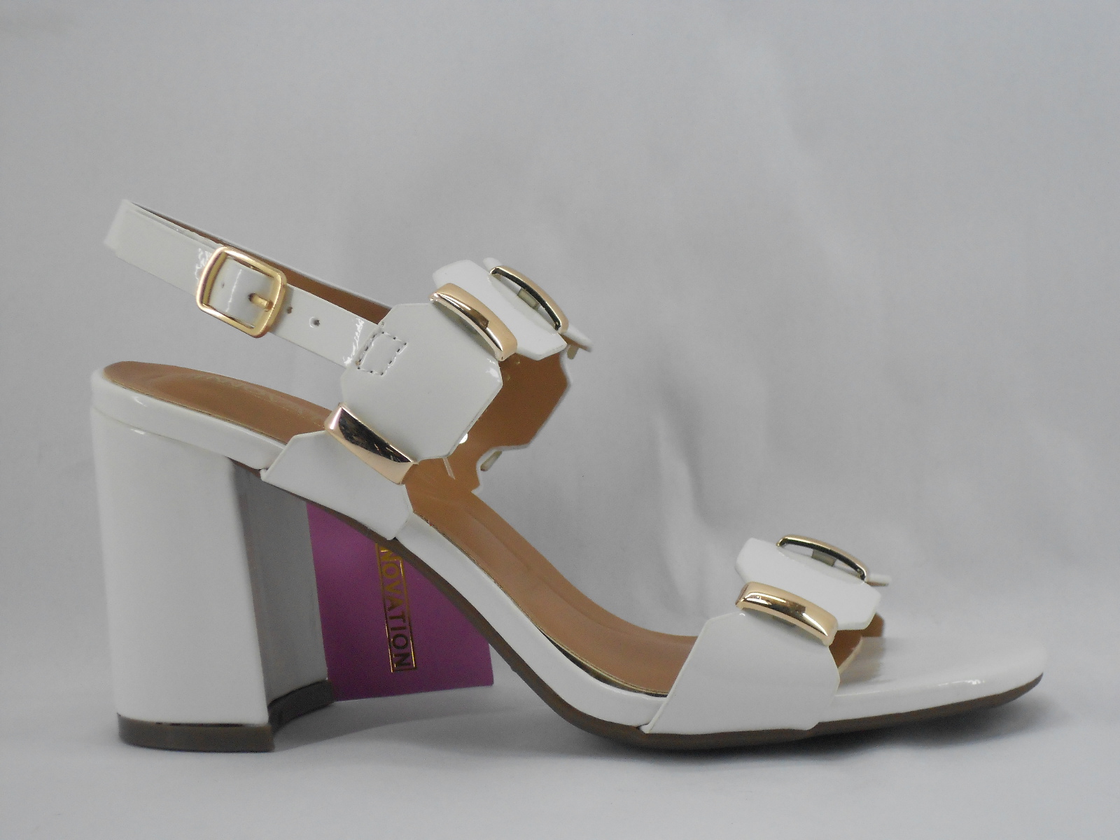 Esta sandália branca destaca-se pelo seu design elegante e sofisticado, ideal para ocasiões especiais ou para elevar looks do dia a dia. Os detalhes dourados nas tiras conferem um toque de brilho e requinte, tornando o modelo ainda mais distinto.