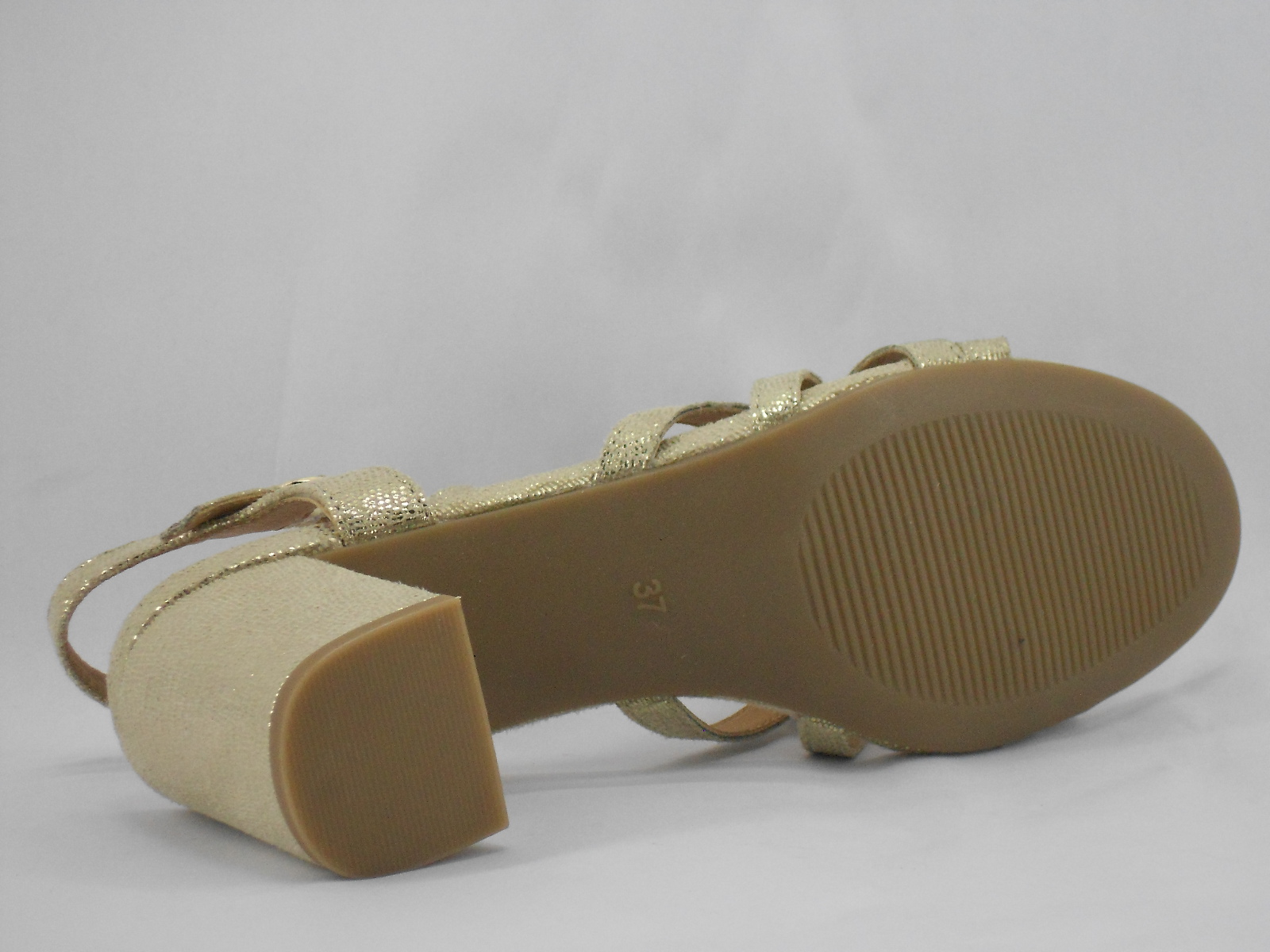 Sandália Dourada com Tiras Cruzadas e Salto Médio