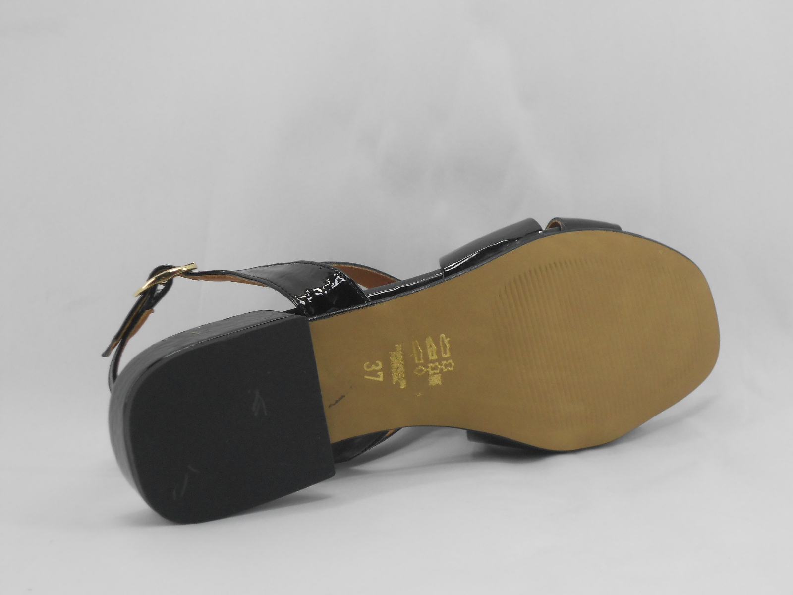 Elegante e versátil, esta sandália feminina preta é ideal para complementar qualquer look com um toque sofisticado. O design com tiras cruzadas em acabamento brilhante valoriza o pé, enquanto a fivela ajustável no tornozelo garante um encaixe seguro e confortável. A sola baixa proporciona estabilidade, tornando-a perfeita para uso prolongado.