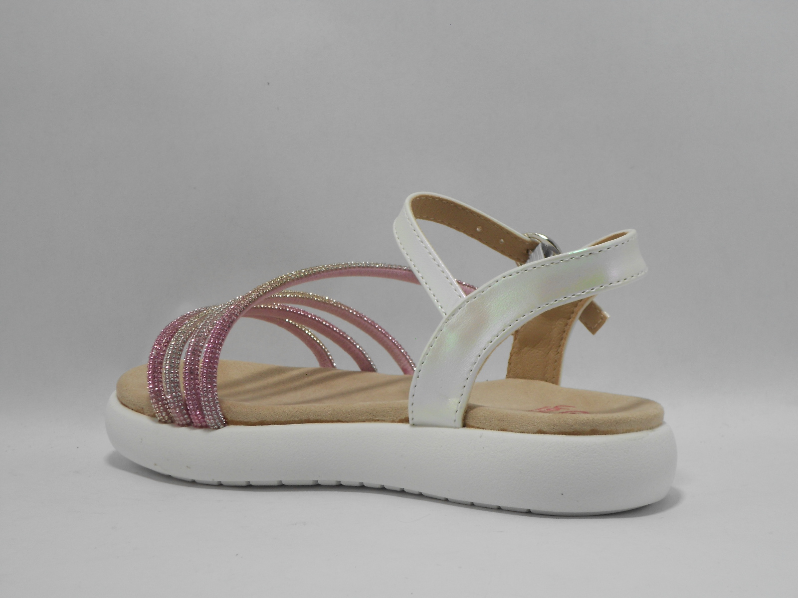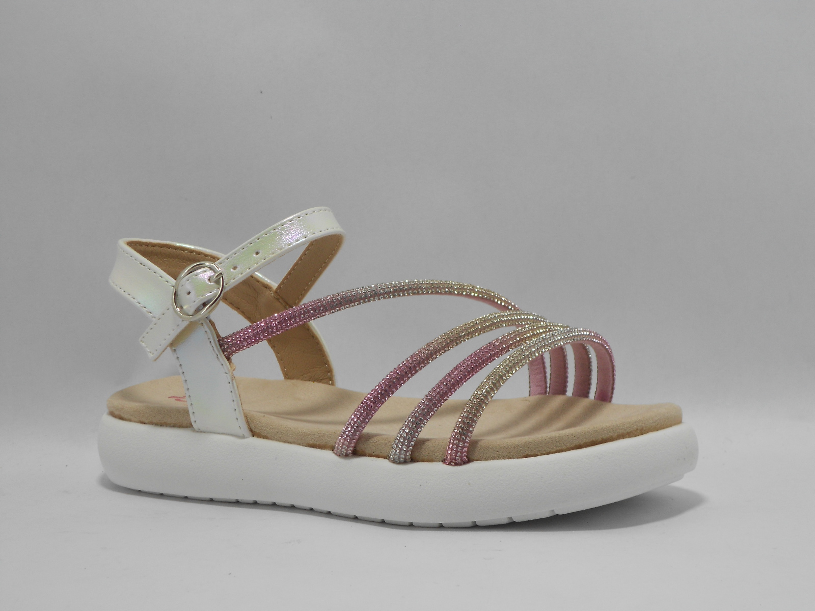 Delicada e cheia de brilho, esta sandália Prata infantil destaca-se pelas tiras finas com acabamento cintilante em tons de rosa, dourado e lilás. O visual encantador torna-a ideal para ocasiões especiais ou passeios cheios de charme.