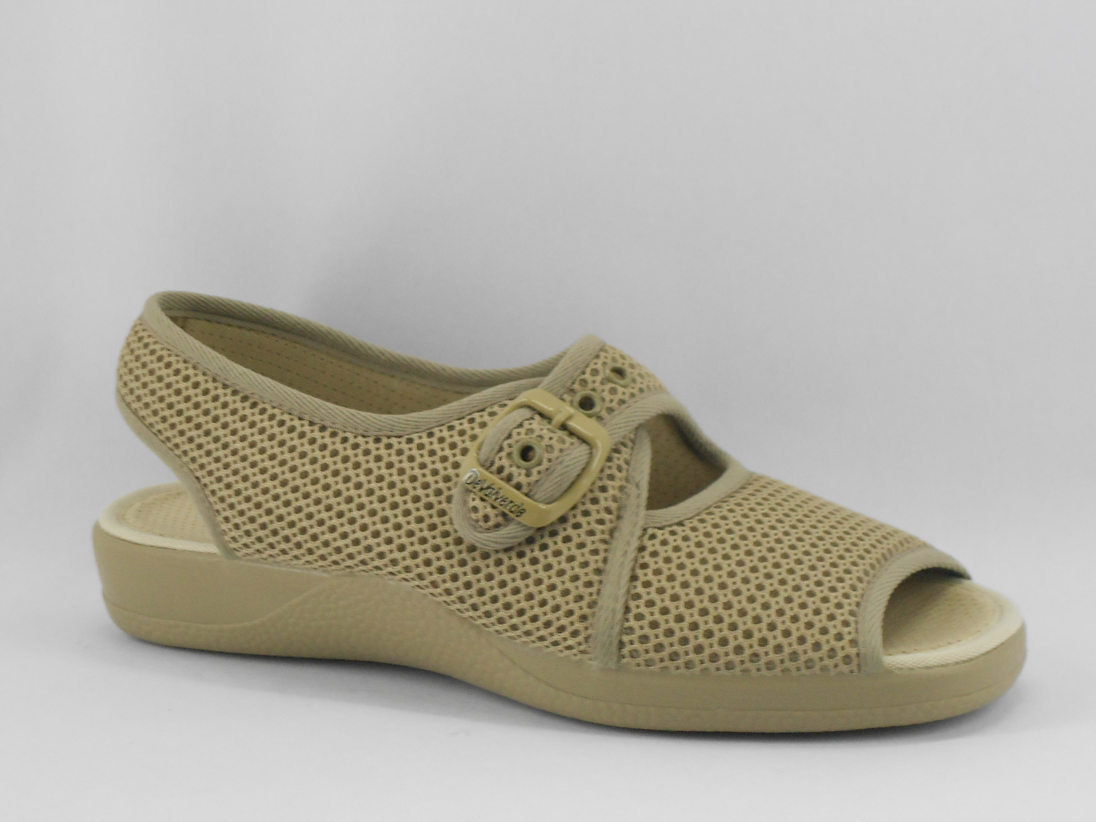 Funcional e leve, esta sandália conforto em tecido bege é ideal para quem procura bem-estar no dia a dia sem abrir mão da praticidade