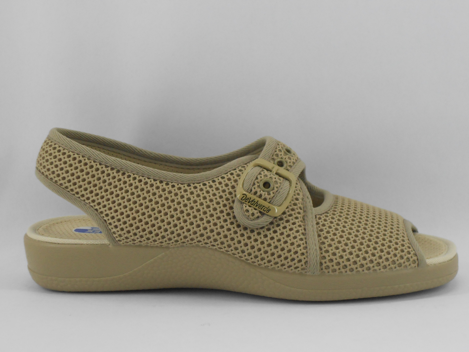 Sandália Conforto Bege com Tecido Respirável e Fivela Decorativa
