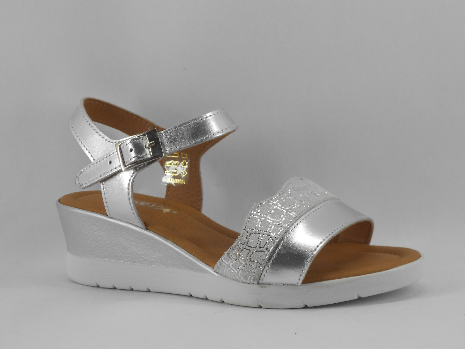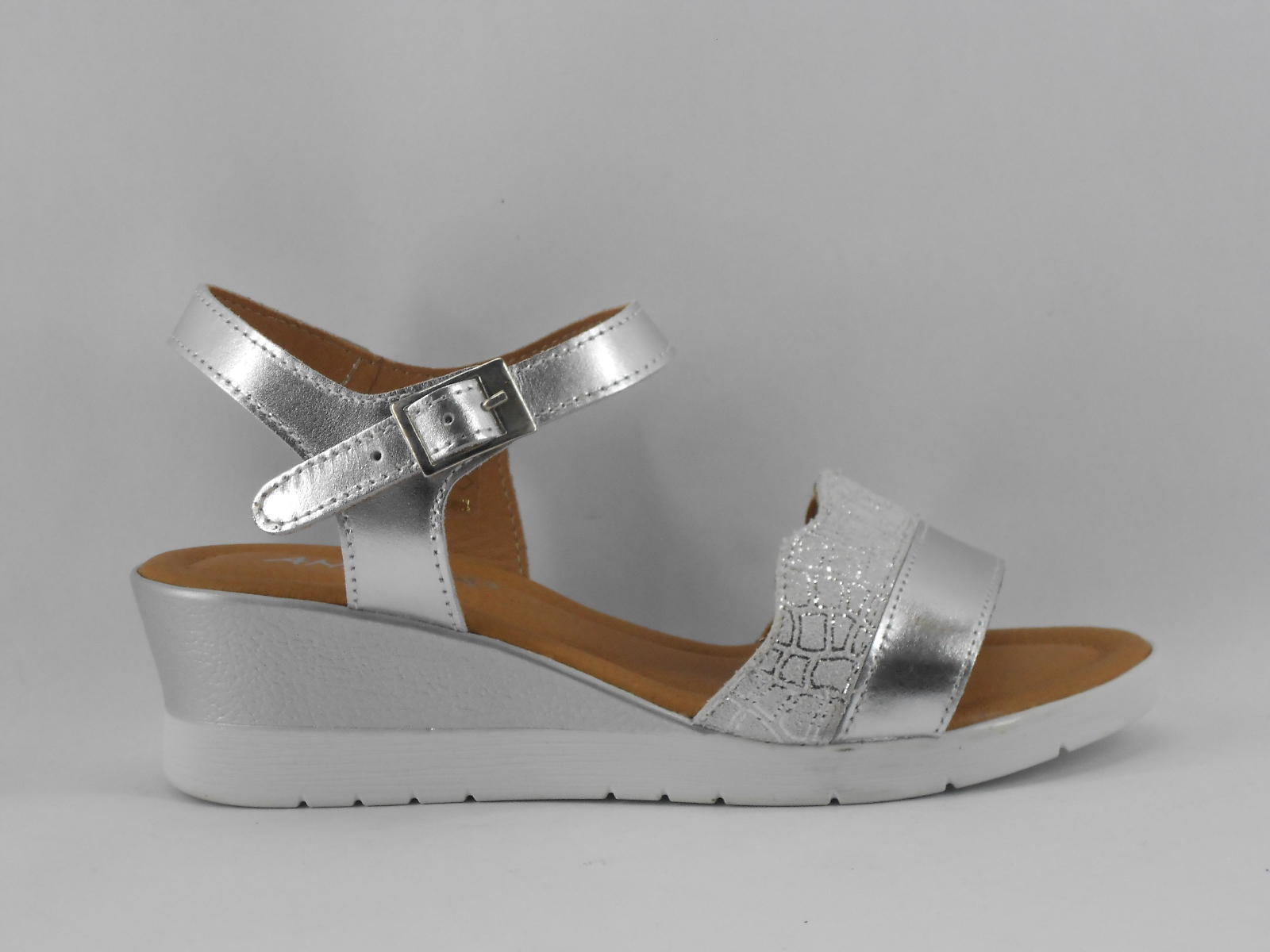 Sandália Feminina de Cunha – Branca com Pormenor Metalizado
