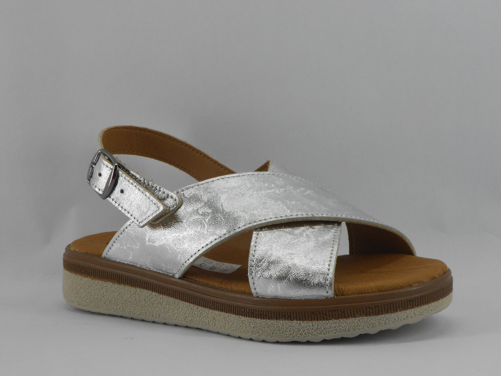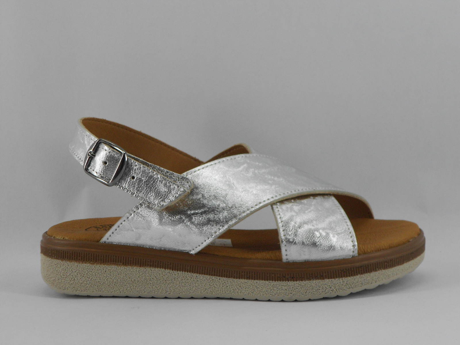 Sandália Prateada com Tiras Cruzadas e Fecho de Fivela
