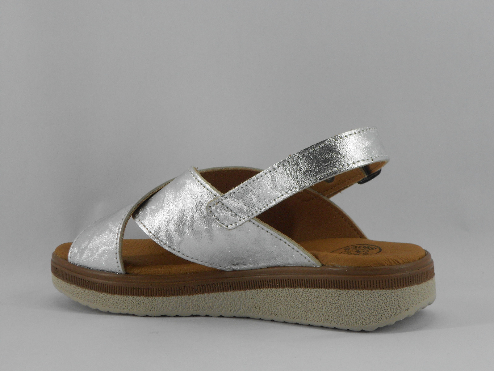Com um design moderno e funcional, esta sandália prateada oferece um visual elegante e confortável para os dias mais quentes