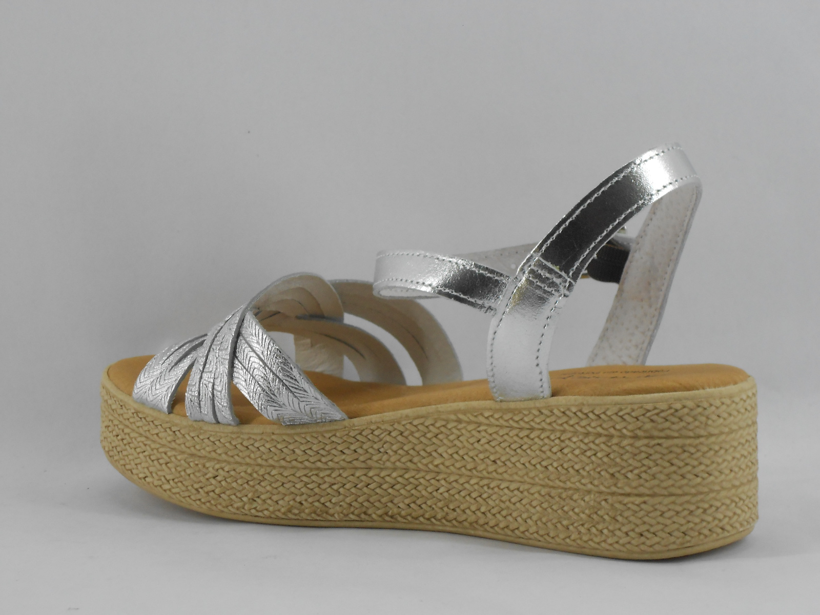 Com um visual elegante e luminoso, estas sandálias prateadas são ideais para dar um toque sofisticado ao seu look de verão. As tiras entrelaçadas destacam-se pelo brilho subtil, enquanto a cunha reforça o estilo leve e natural da estação.