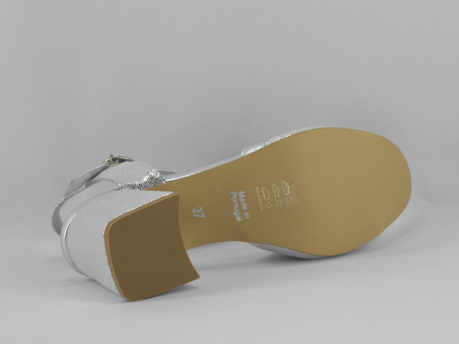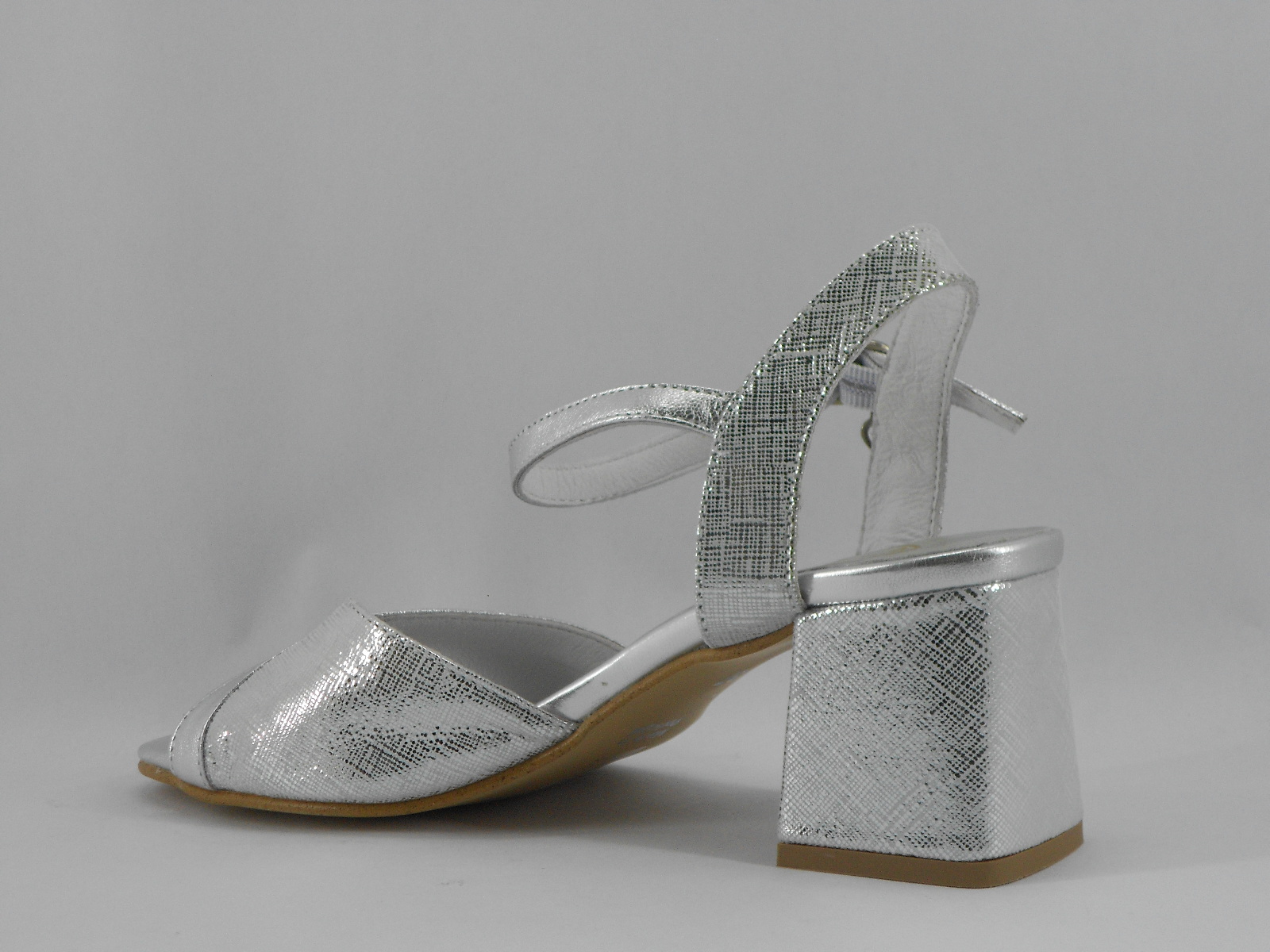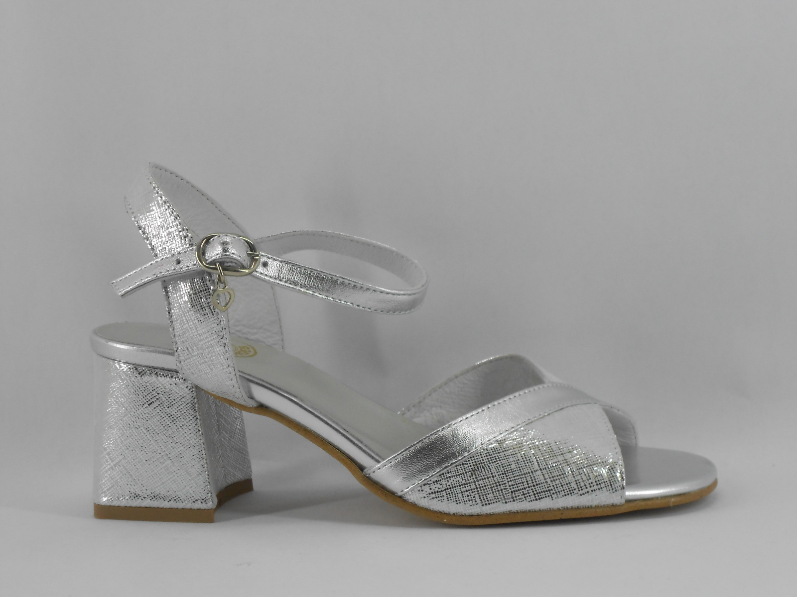 Sandália Prateada com Salto Largo e Detalhe de Coração