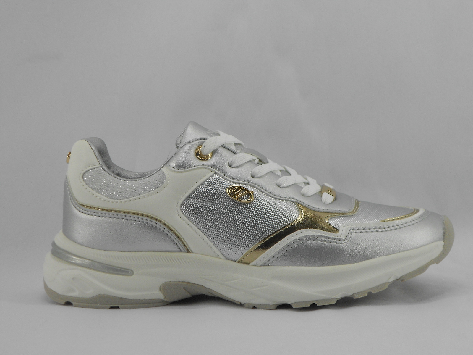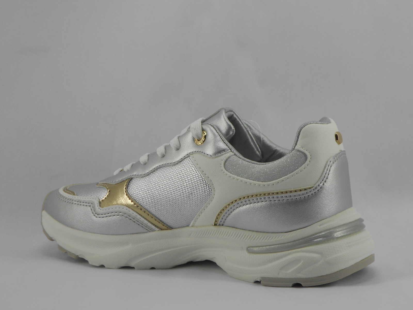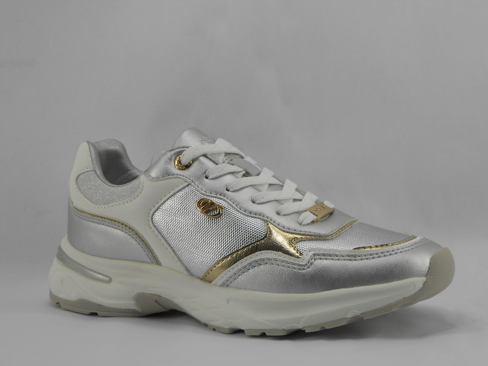 Sapatilha Desportiva Prateada com Detalhes Dourados de Estilo Moderno
