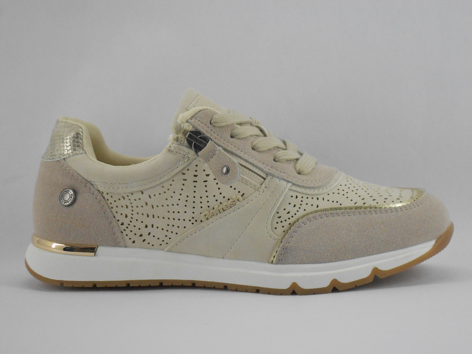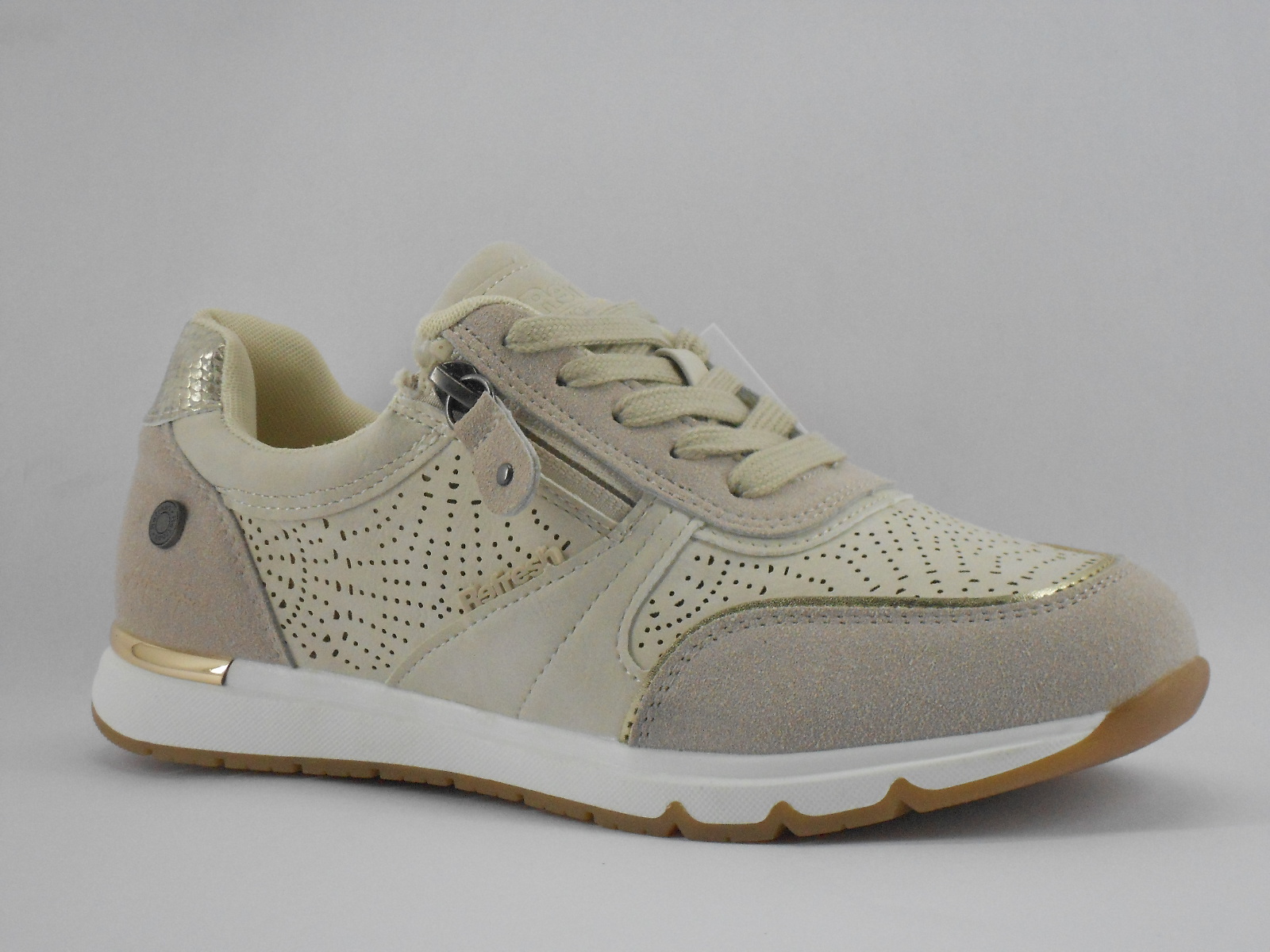 Com um design moderno e versátil, esta sapatilha feminina em tom bege é ideal para quem procura conforto aliado a um visual elegante e discreto. Os detalhes perfurados ajudam na respirabilidade, tornando o calçado mais leve e agradável para o uso diário. O fecho lateral combinado com os atacadores facilita o calçar e garante um ajuste seguro.