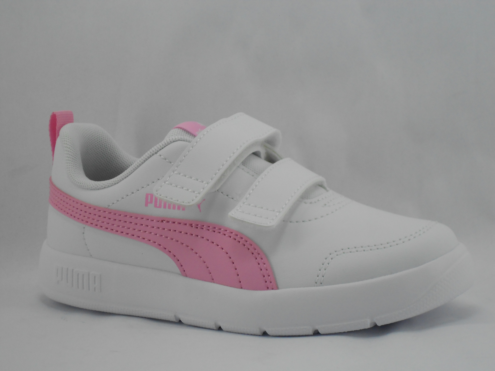 Sapatilha Puma Courfflex V3 Juvenil Branca com Detalhes Rosa de Estilo Desportivo
