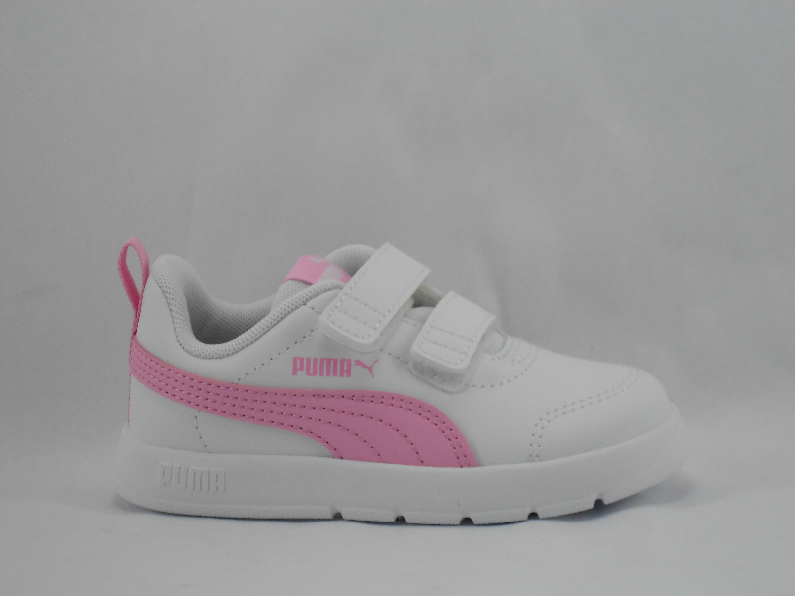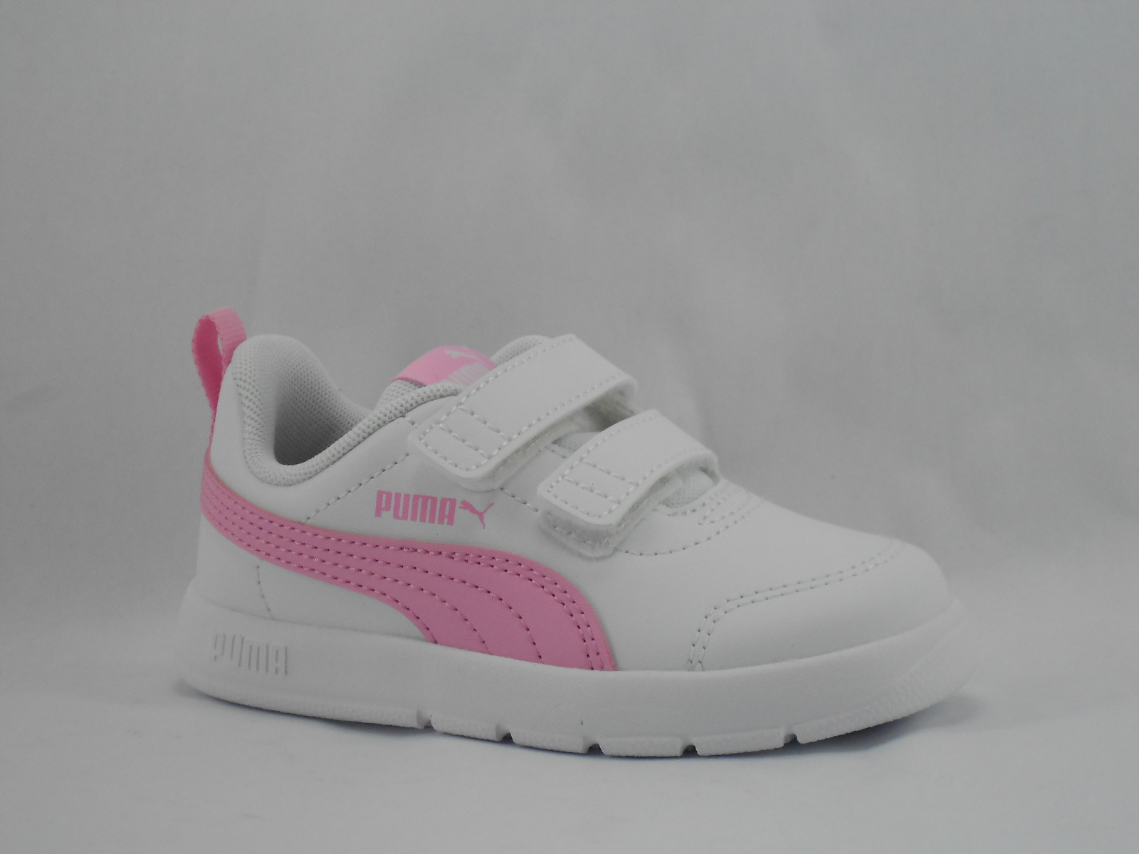 Sapatilha Puma Courflex V3 Infantil Branca com Detalhes Rosa de Estilo Desportivo