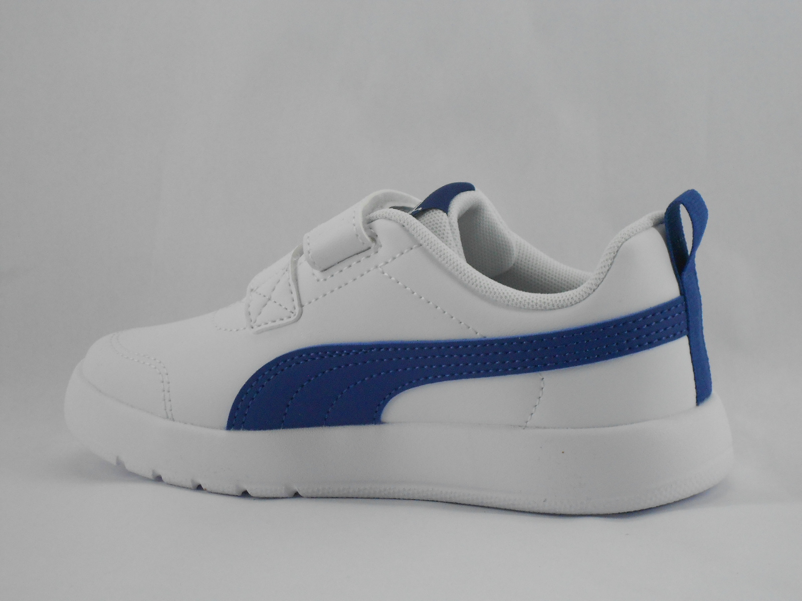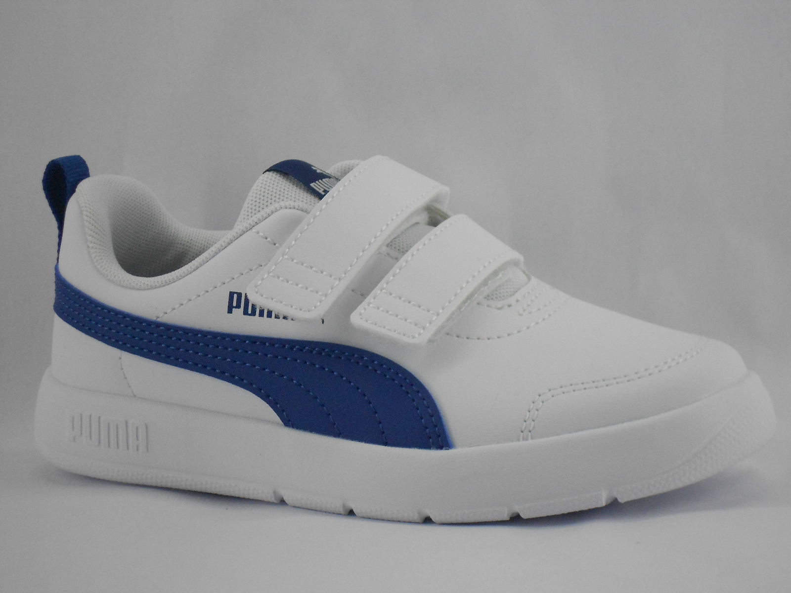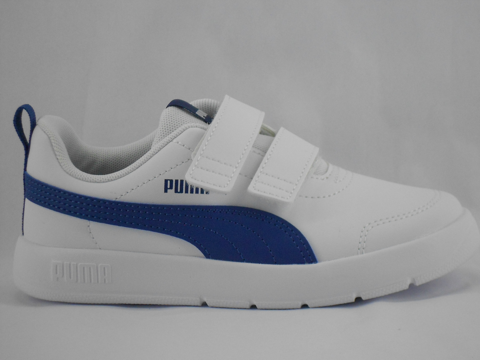 Ténis Infantil Branco com Detalhes Azuis e Fecho em Velcro Puma