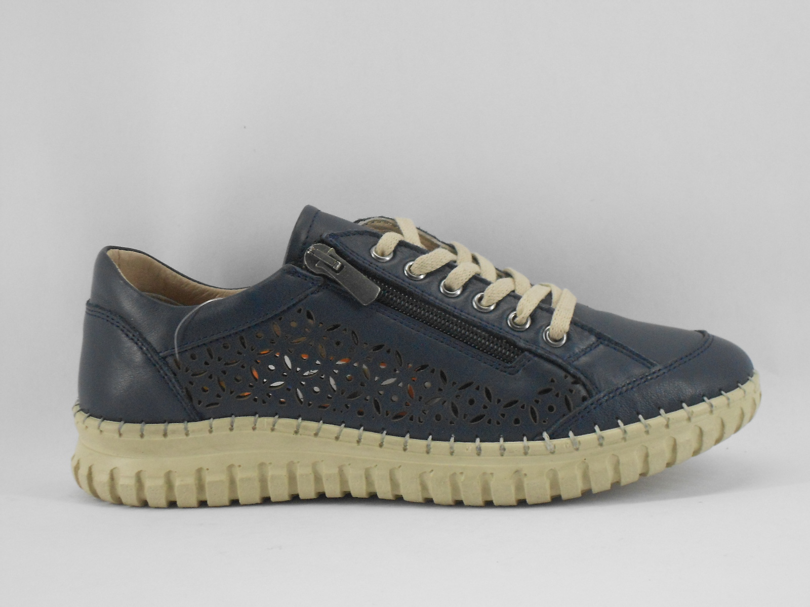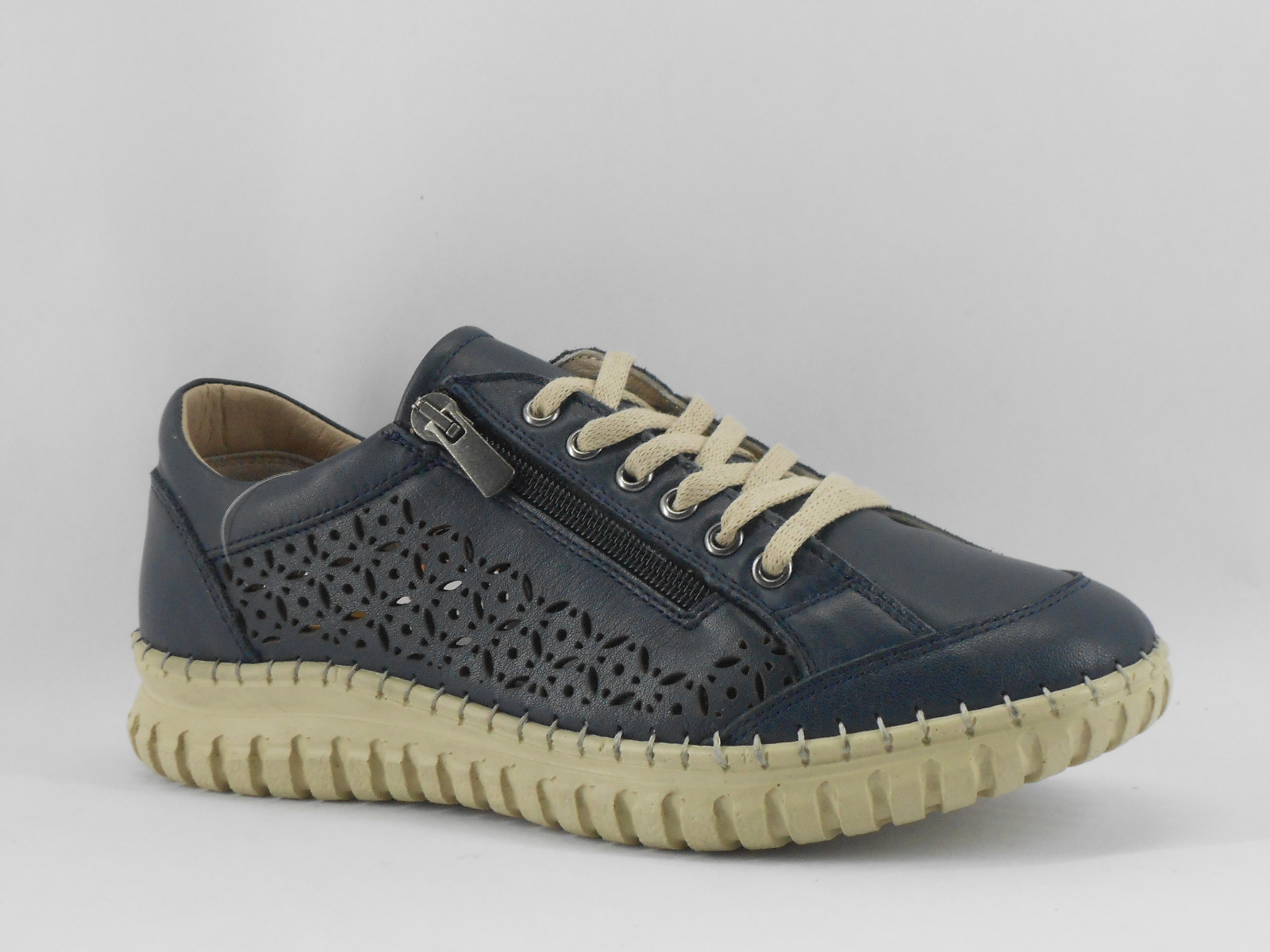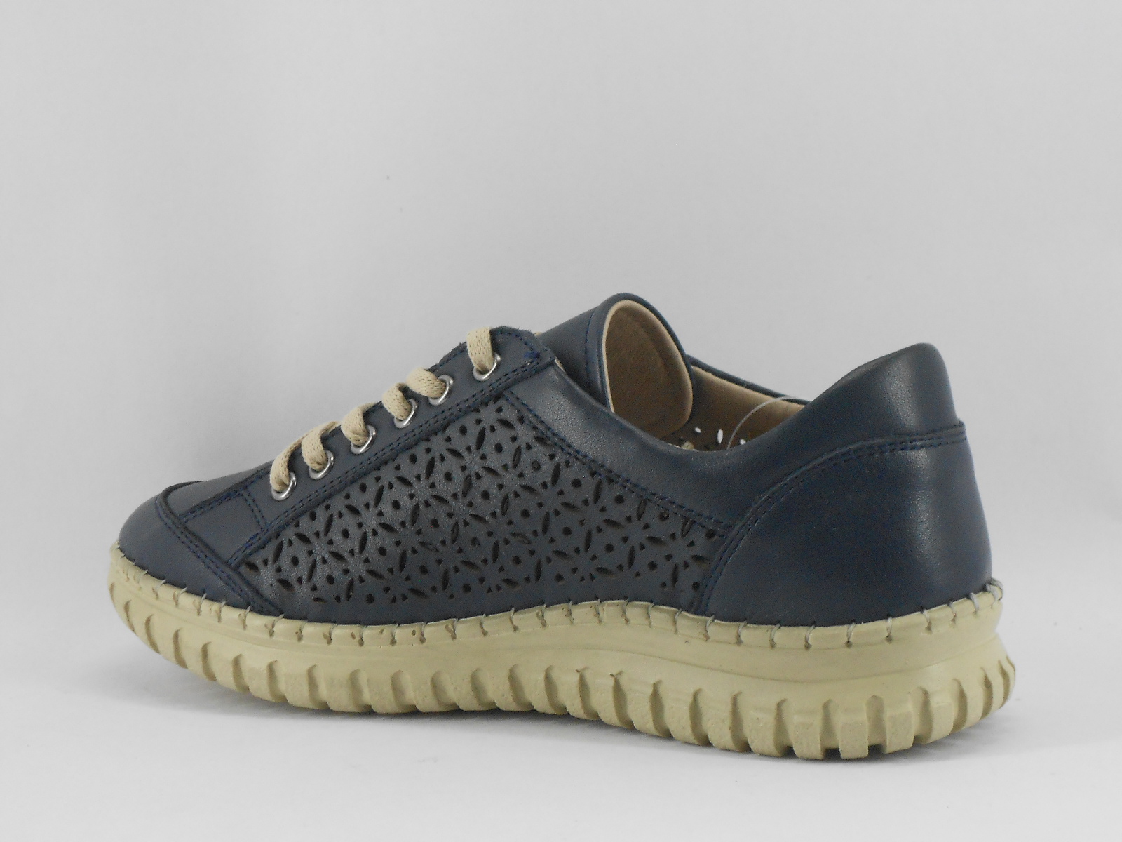 Leve, confortável e elegante, este sapato casual feminino é ideal para o uso diário. Fabricado em pele Azul de alta qualidade, apresenta recortes florais perfurados que proporcionam um visual delicado e garantem excelente ventilação.