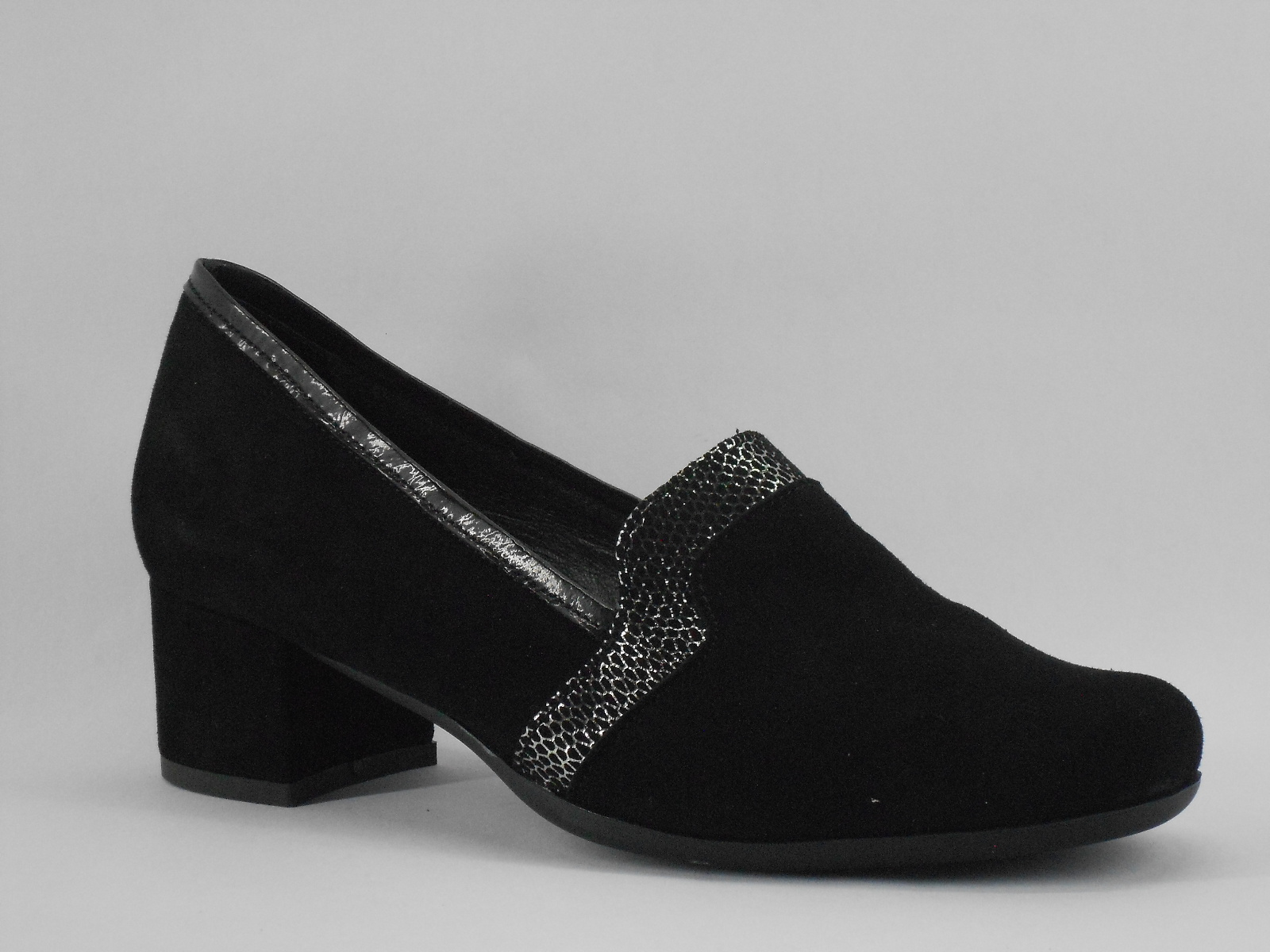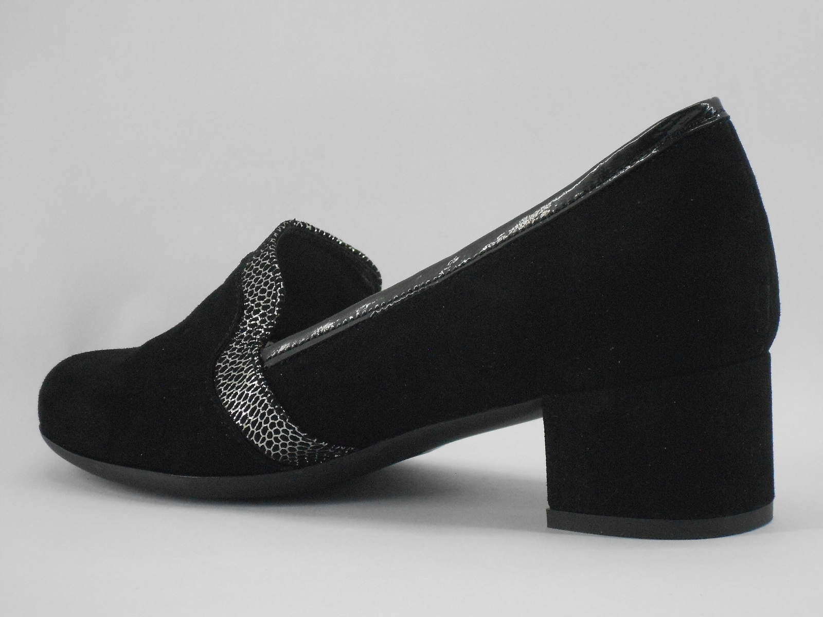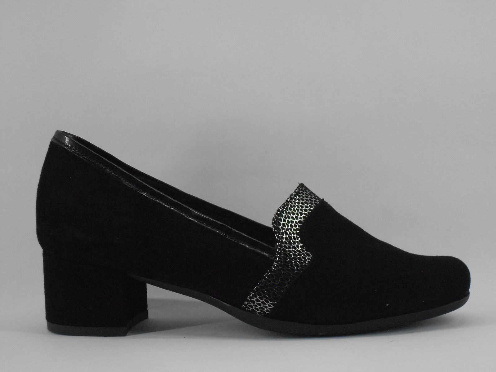 Elegante e sofisticado, este sapato feminino em preto é a escolha perfeita para quem procura um calçado versátil que alia conforto e estilo. O design clássico é realçado por detalhes texturizados subtis em preto brilhante, que acrescentam um toque moderno e distinto. O salto médio e largo garante estabilidade e conforto para o uso diário ou em ocasiões especiais.