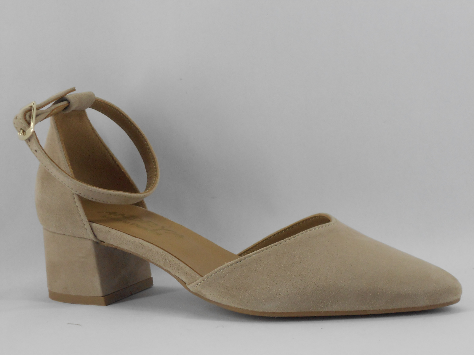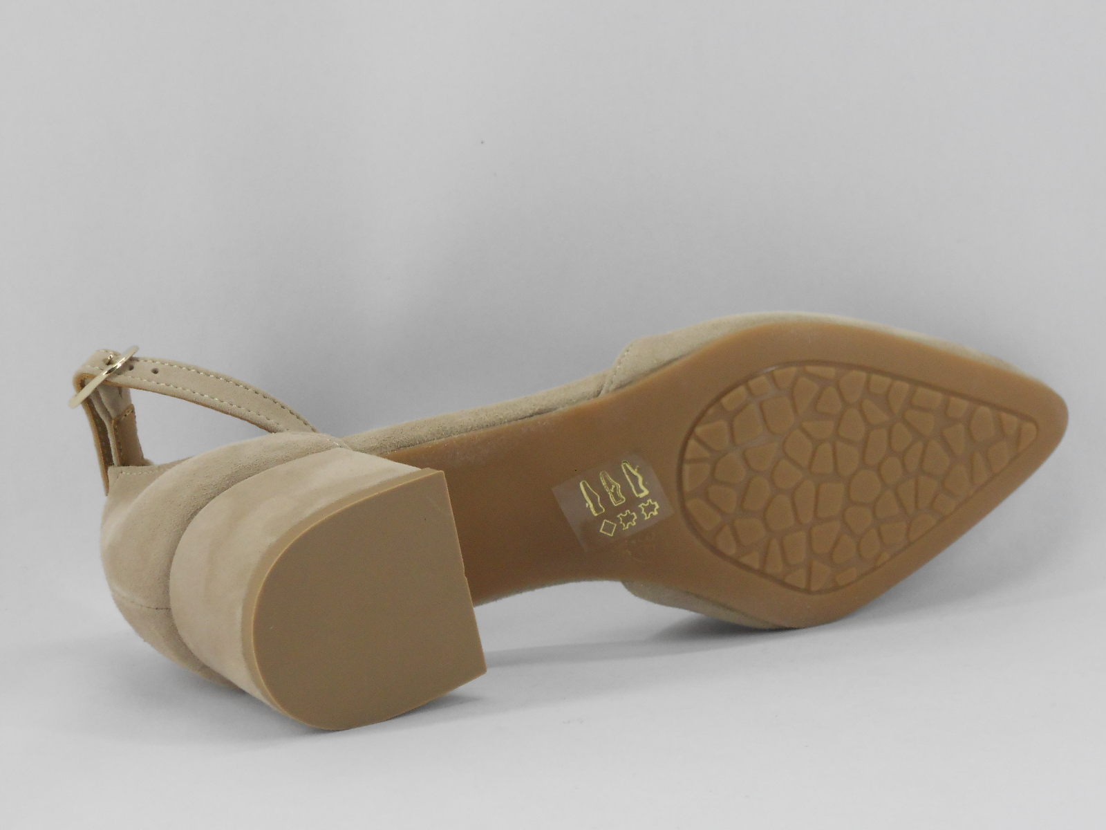 Com um design minimalista e sofisticado, este sapato feminino de salto médio em nobuk natural é a escolha ideal para quem procura elegância com conforto. A sua tonalidade bege nude oferece versatilidade, combinando facilmente com diferentes looks e ocasiões.