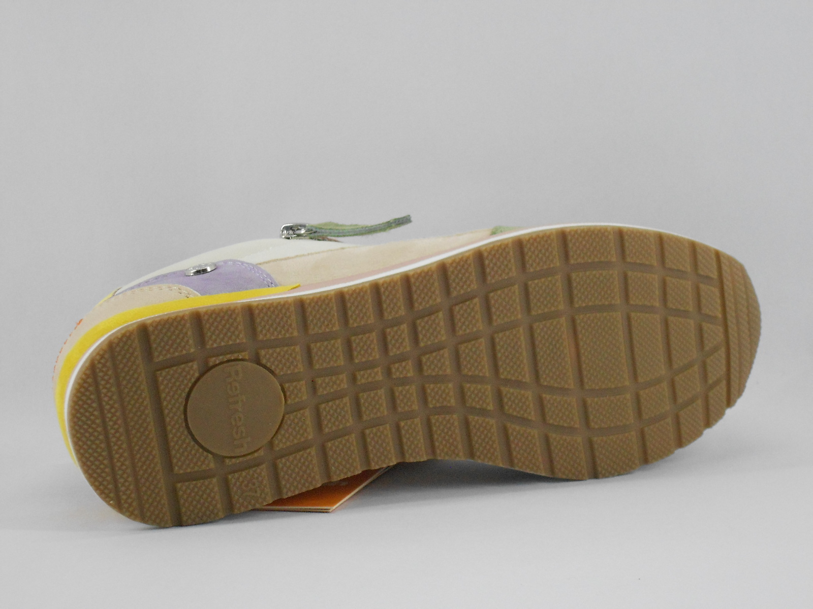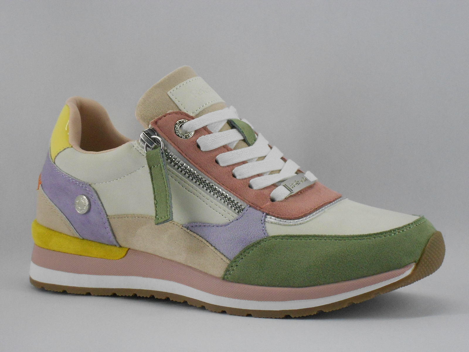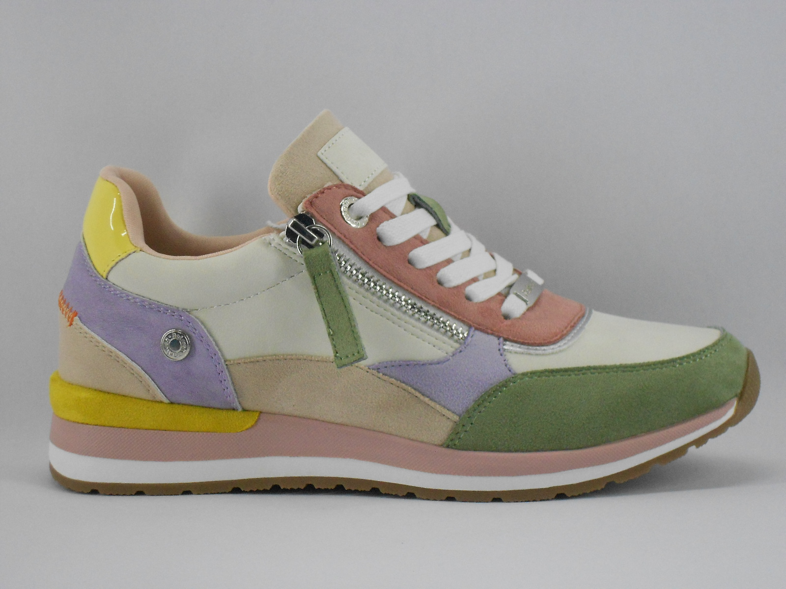 Este sapato casual feminino apresenta um design vibrante e cheio de personalidade, com uma combinação harmoniosa de tons pastel como verde, rosa, lilás, amarelo e bege. Ideal para quem procura um visual descontraído e moderno, sem abdicar do conforto.
