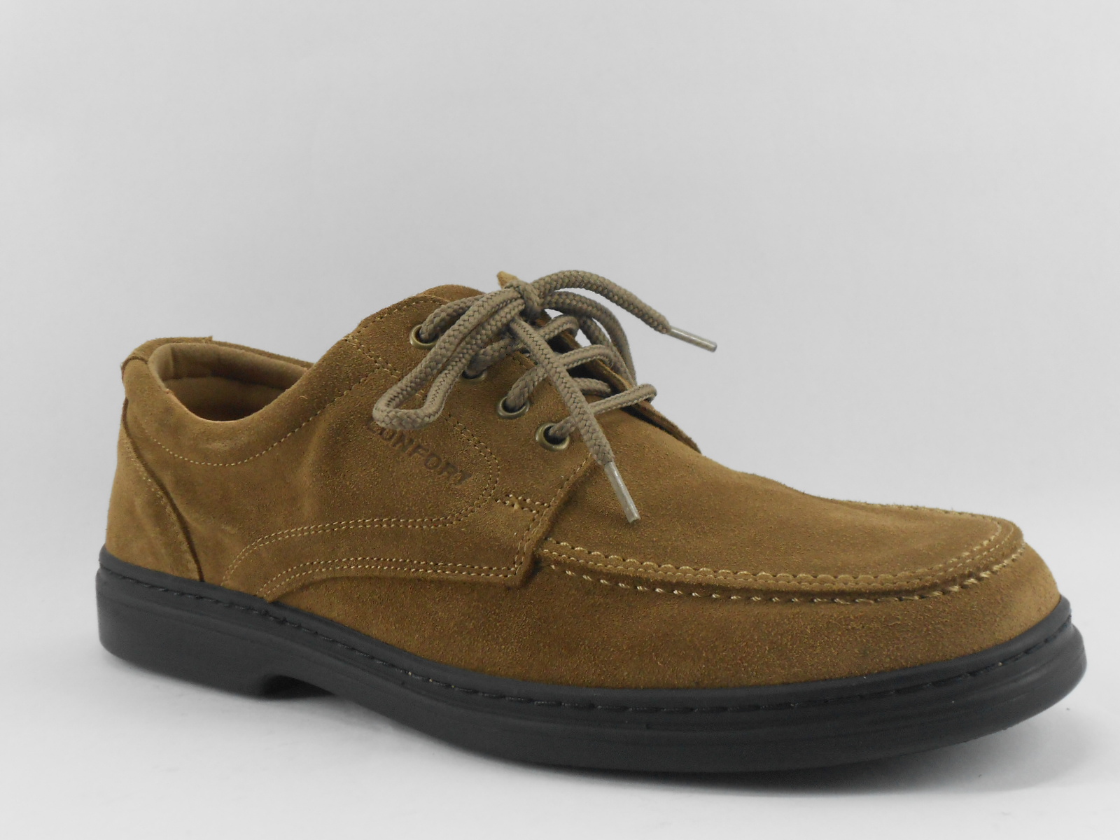 Este sapato masculino em camurça castanha alia conforto e estilo clássico, ideal para quem valoriza elegância no dia a dia. O design com atacadores permite um ajuste personalizado, enquanto os pormenores de costura visível realçam a qualidade do acabamento.