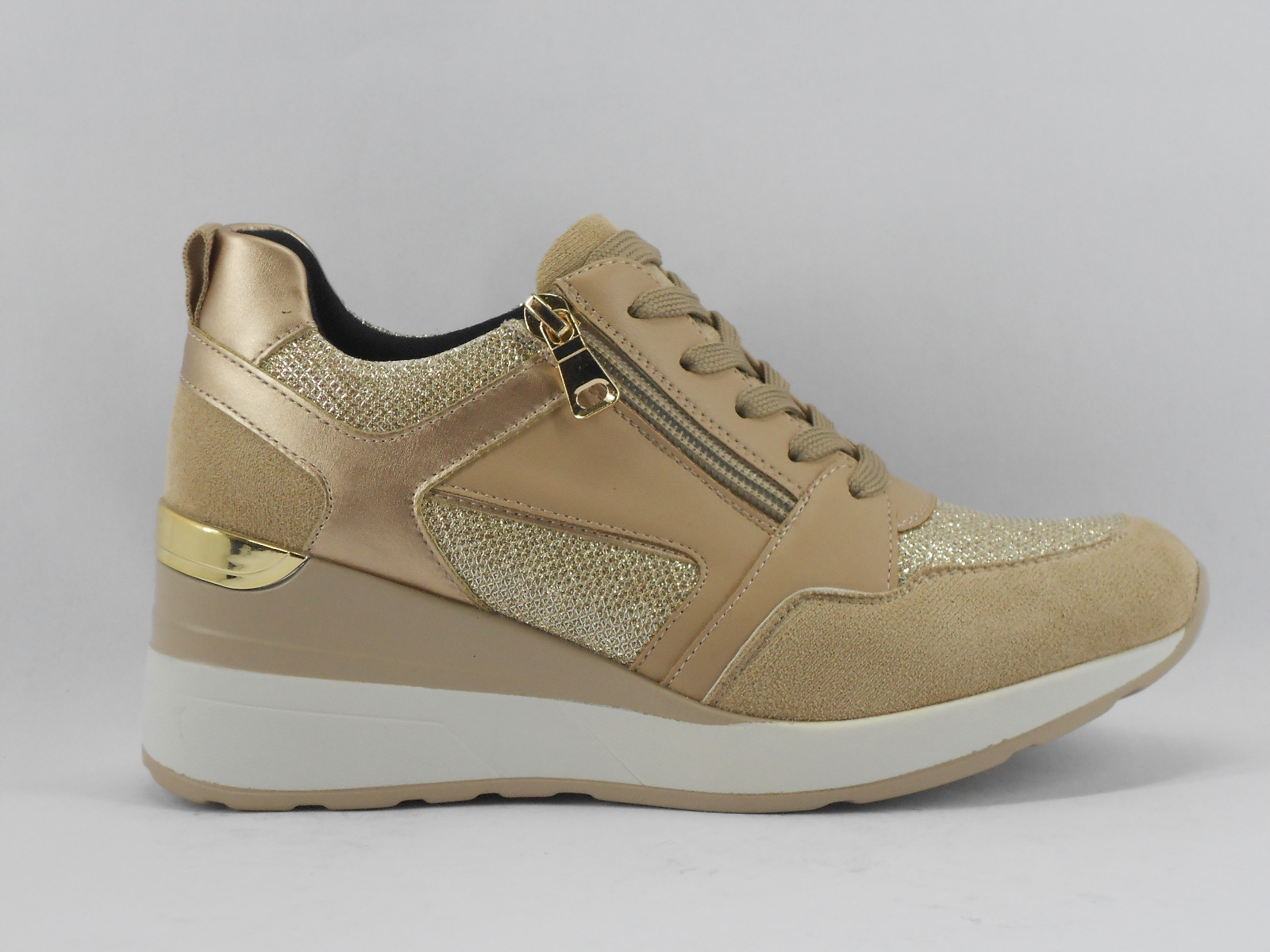 Ténis Feminino Bege com Brilho e Fecho Lateral