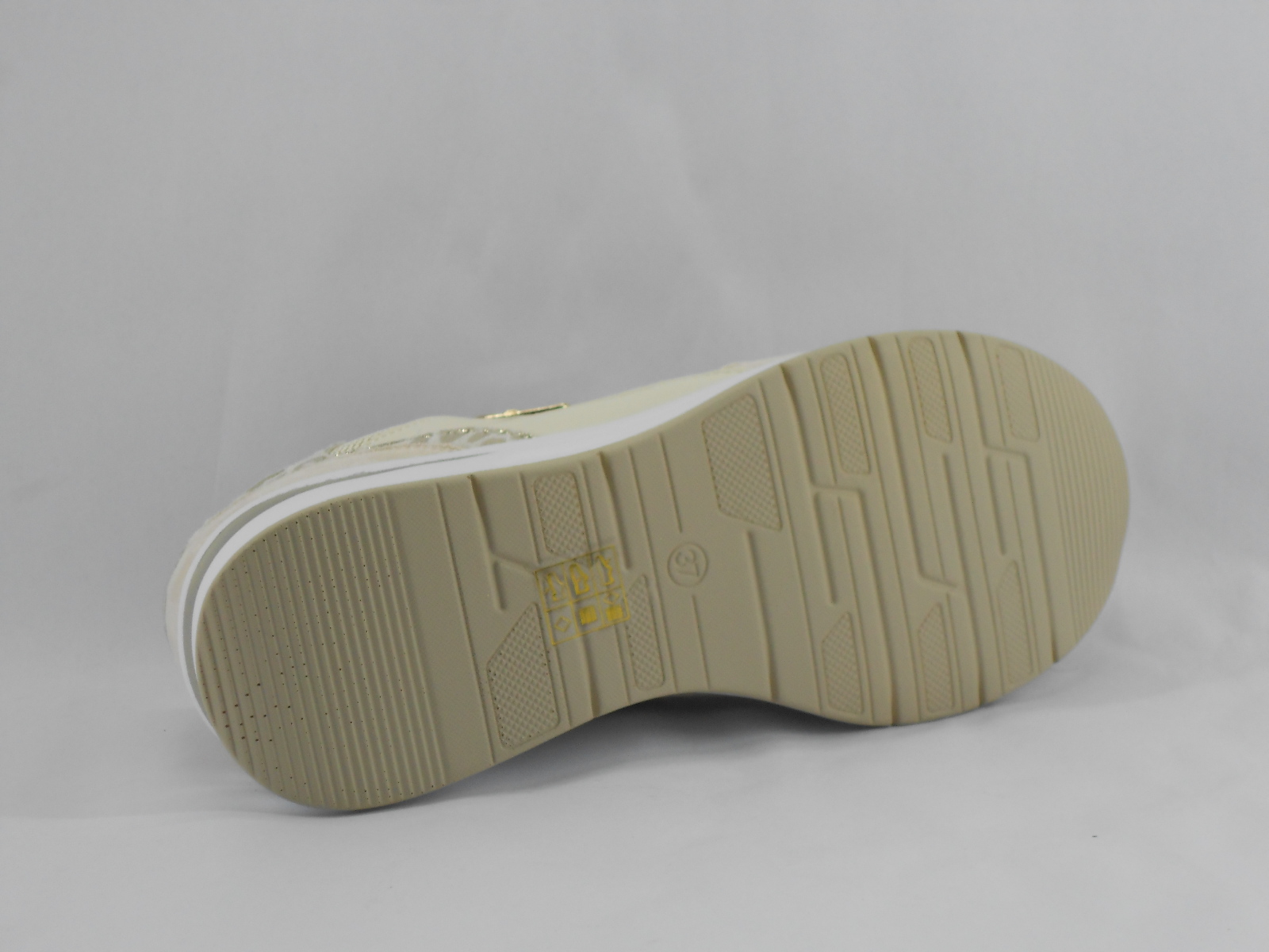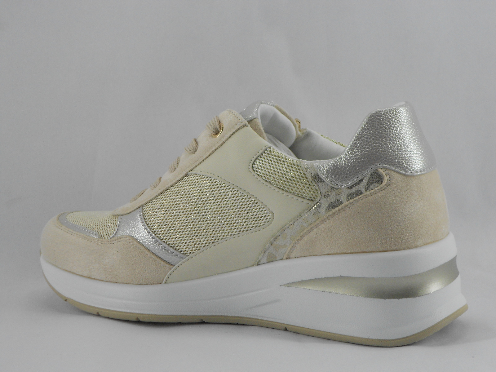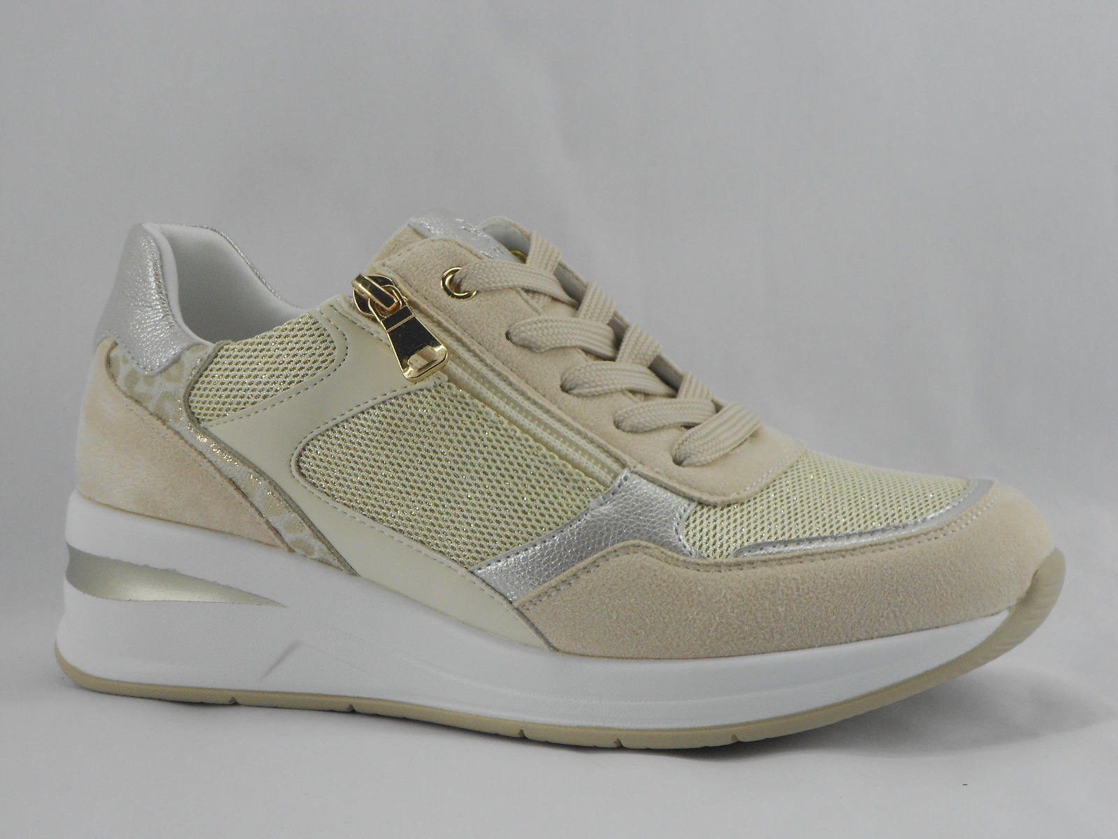 Este ténis bege combina elegância e conforto num design moderno, ideal para o dia a dia. O exterior integra painéis em malha respirável que permitem maior ventilação, enquanto os detalhes metalizados acrescentam um toque sofisticado ao modelo.